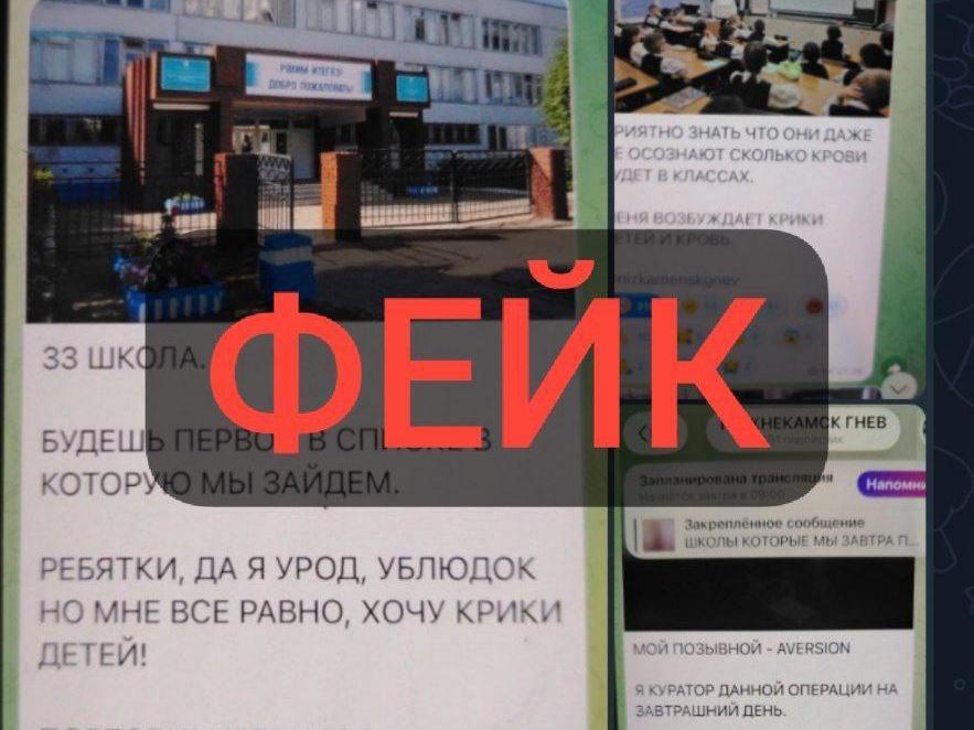 New Telegram channels have begun appearing online with threats of new attacks, similar to the one that happened yesterday at Nizhnekamsk Lyceum No. 37. These are fakes by provocateurs, said the city administration press secretary Yana Komarova-Yenkova in her Telegram channel.