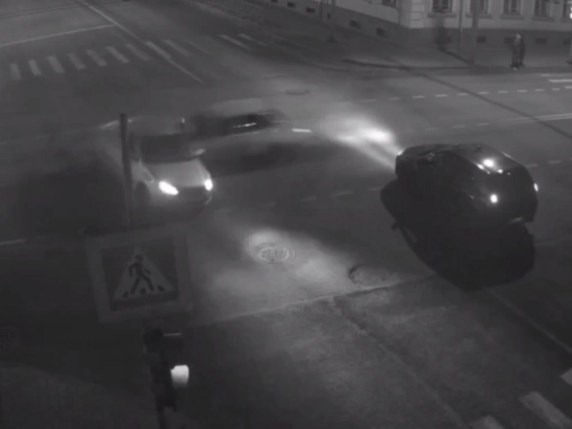 The collision occurred on the night of December 13, 2025. Surveillance camera footage shows a Lada Priora car crashing into a Lada Granta at high speed. From the strong impact, the Granta is spun around on the roadway.