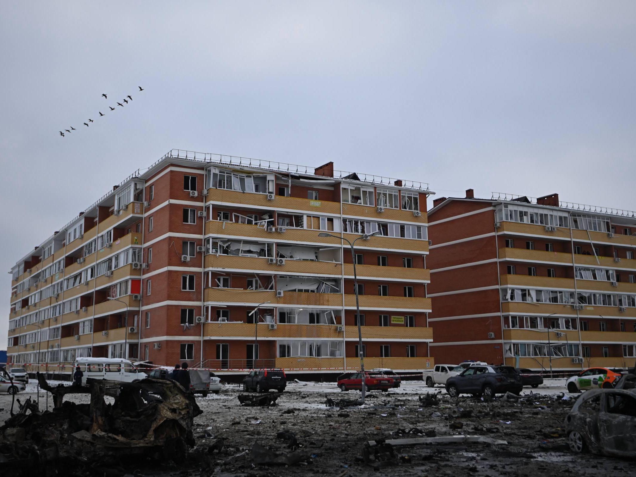 On the night of January 21, during a massive drone attack over Krasnodar Krai and the sea area, a series of explosions occurred in the aul of Novaya Adygeya. Authorities stated that it was a «UAV strike.» As a result, apartment buildings and private houses were damaged, at least 15 cars burned down, and dozens of vehicles and buildings had their windows blown out. A multi-story building in one of the residential complexes was hit particularly hard.