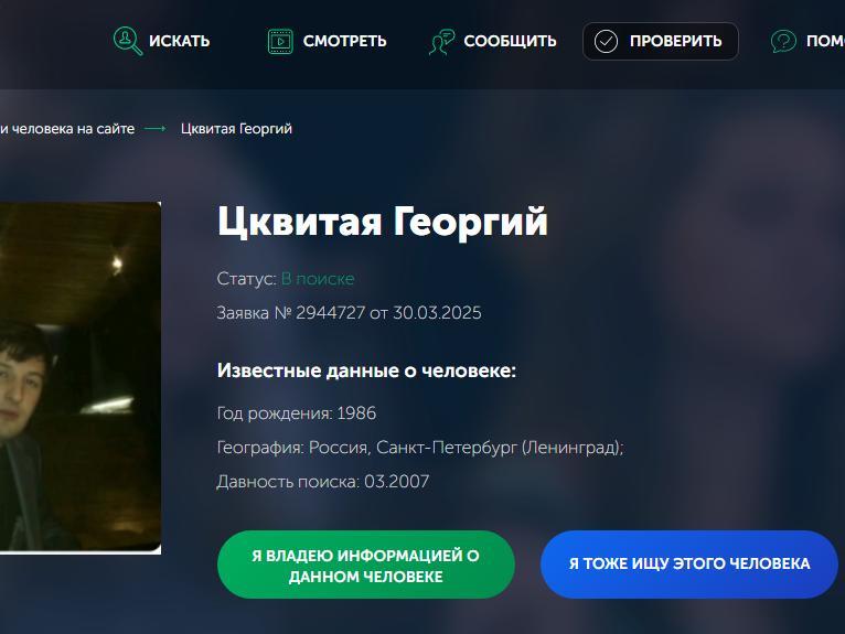 An application to search for Georgy remains active on the «Wait for Me» program website.