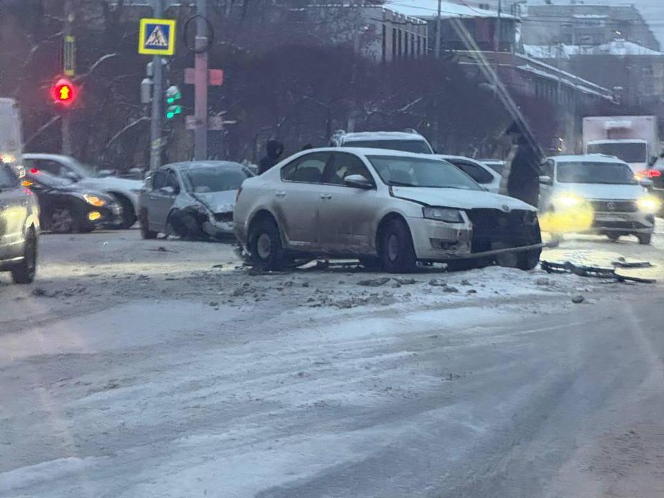 In the morning, two cars collided at the intersection of Malysheva and Bazhova streets. According to the traffic police (GIBDD), no one was injured.
