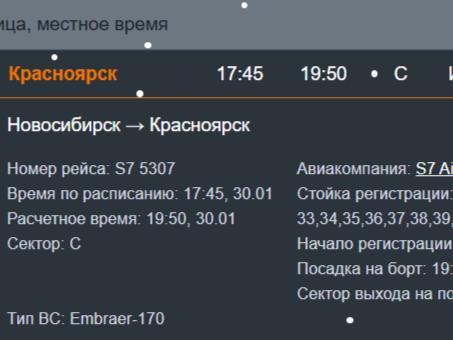 The online board shows flight 5307 from Novosibirsk to Krasnoyarsk was scheduled to depart at 17:45 and arrive at 19:50.
