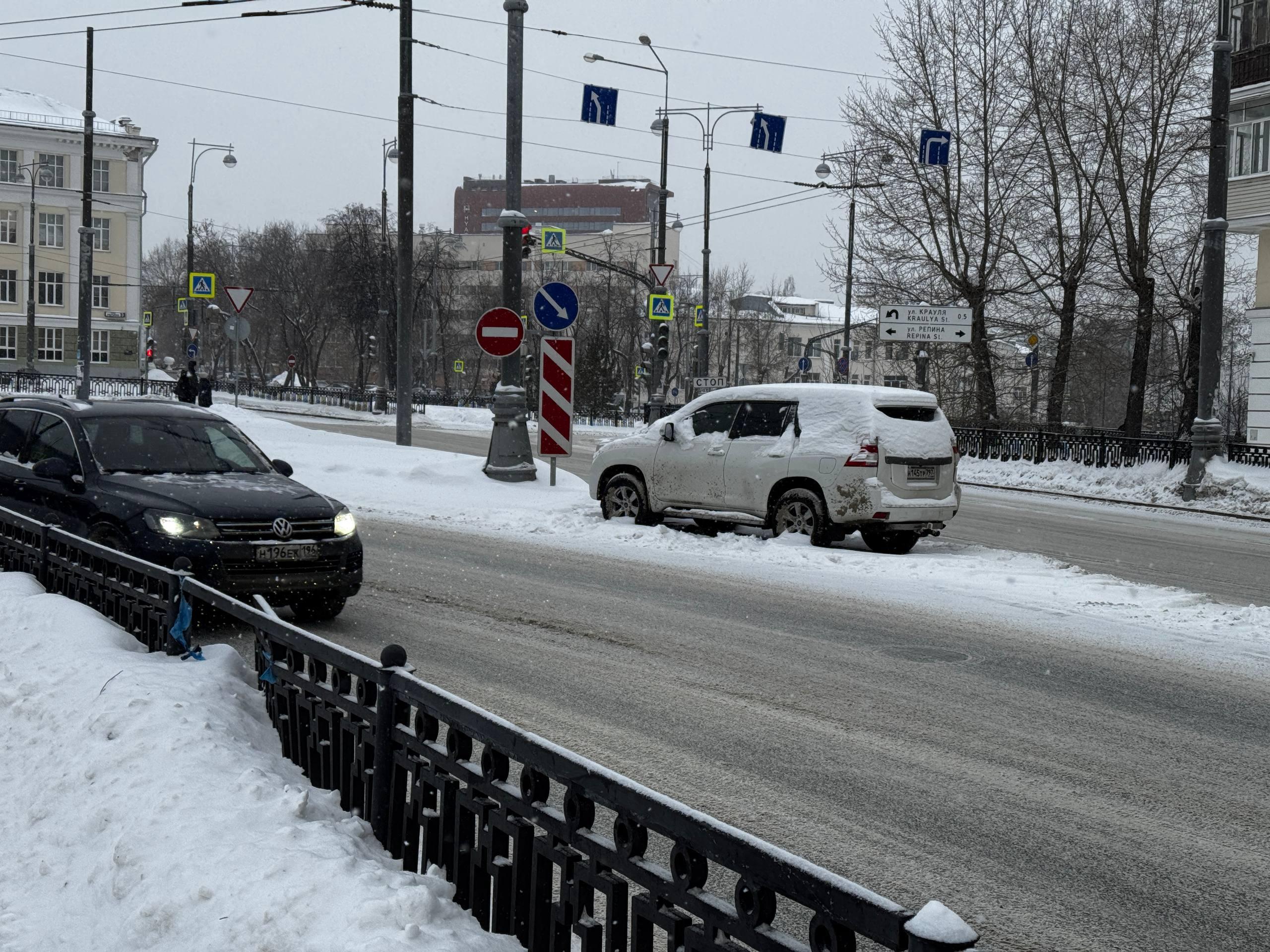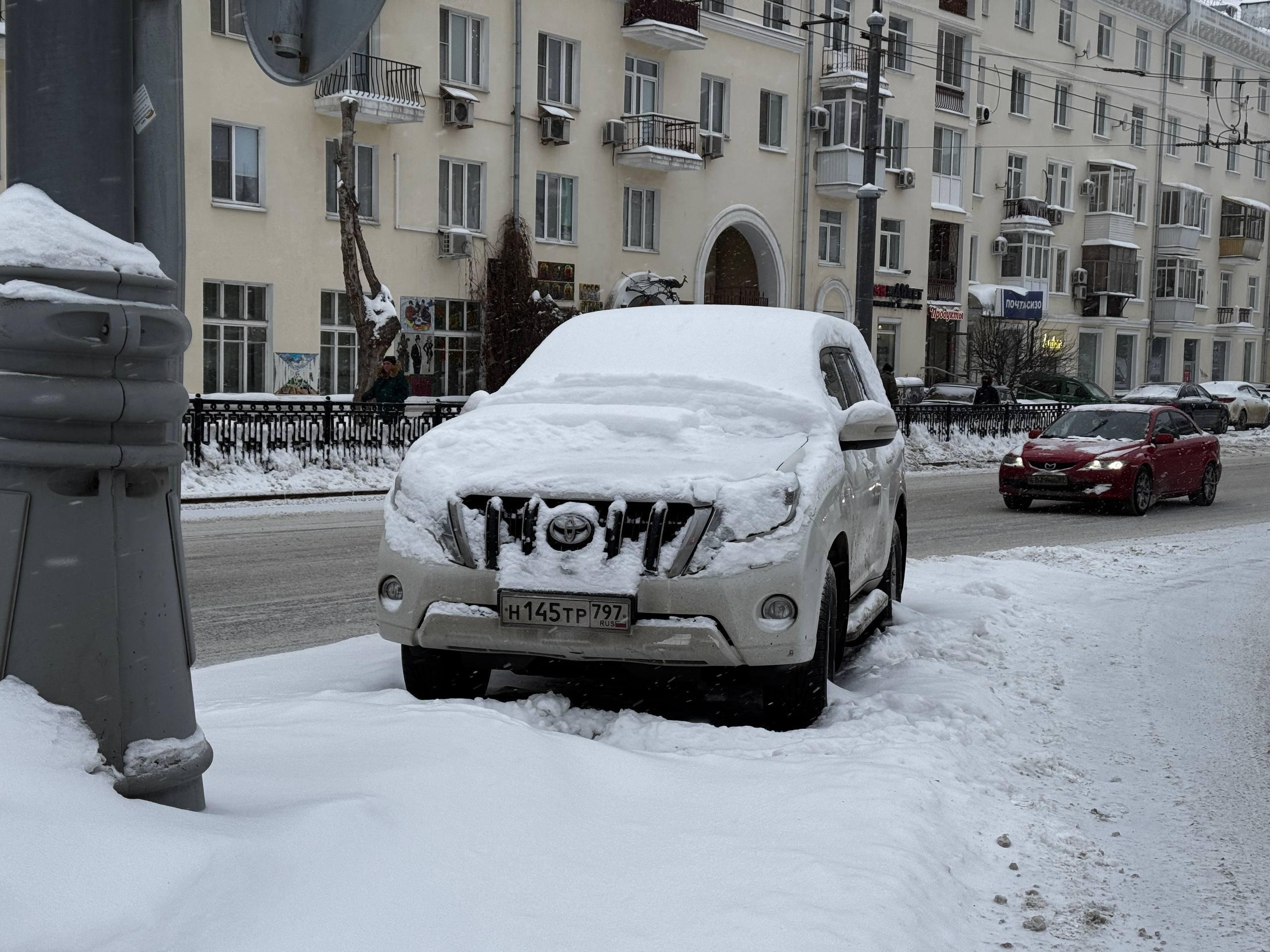A white Land Cruiser with Moscow license plates was abandoned near the central stadium in Yekaterinburg. It is parked on a traffic island in the middle of the road. Readers first spotted the SUV on January 27, and it remains in place.