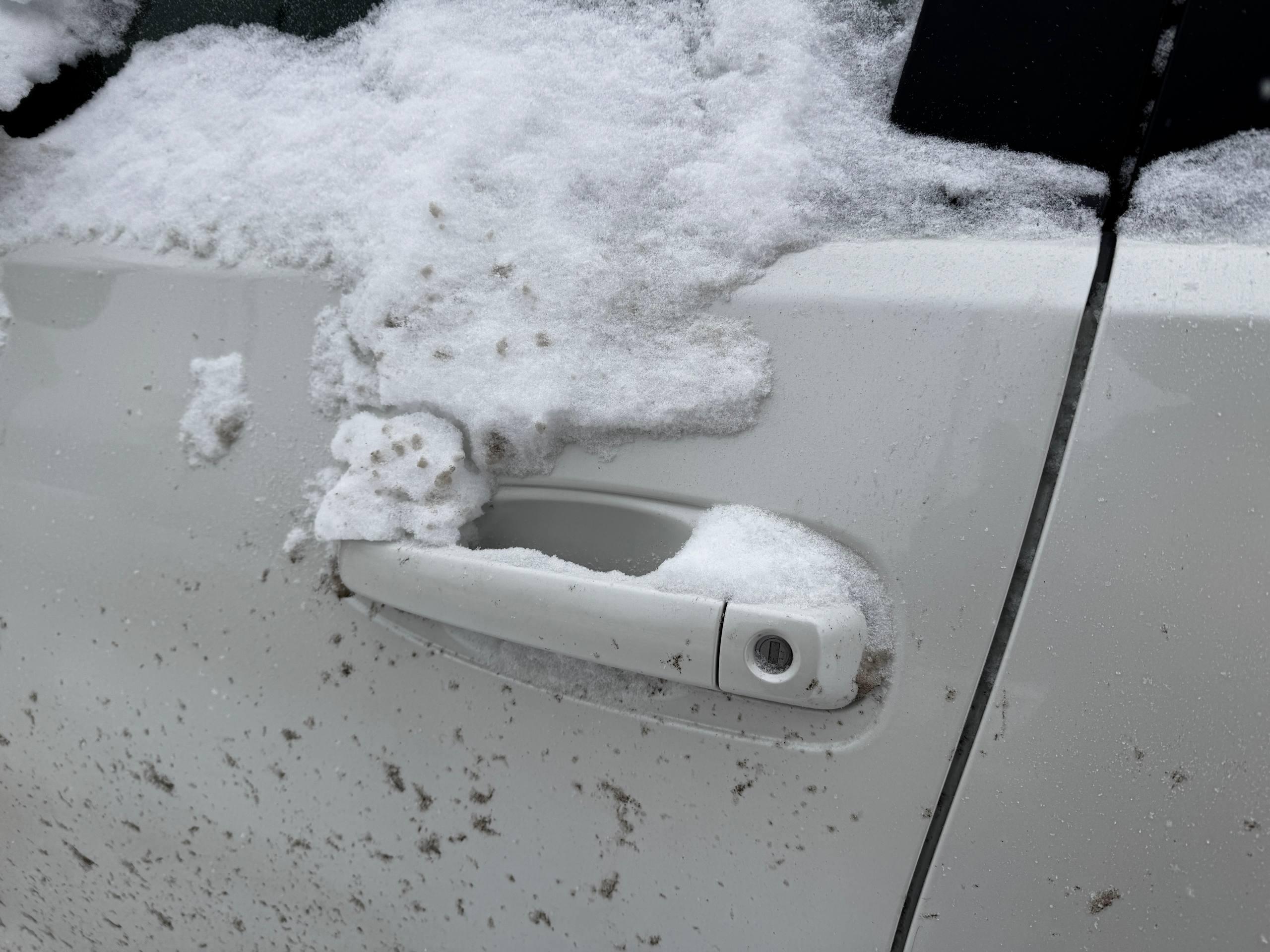 Over the week, the car became dusted with snow. Someone wiped the side window. Apparently, passing bystanders wanted to check if the driver was okay. But he was not behind the wheel.