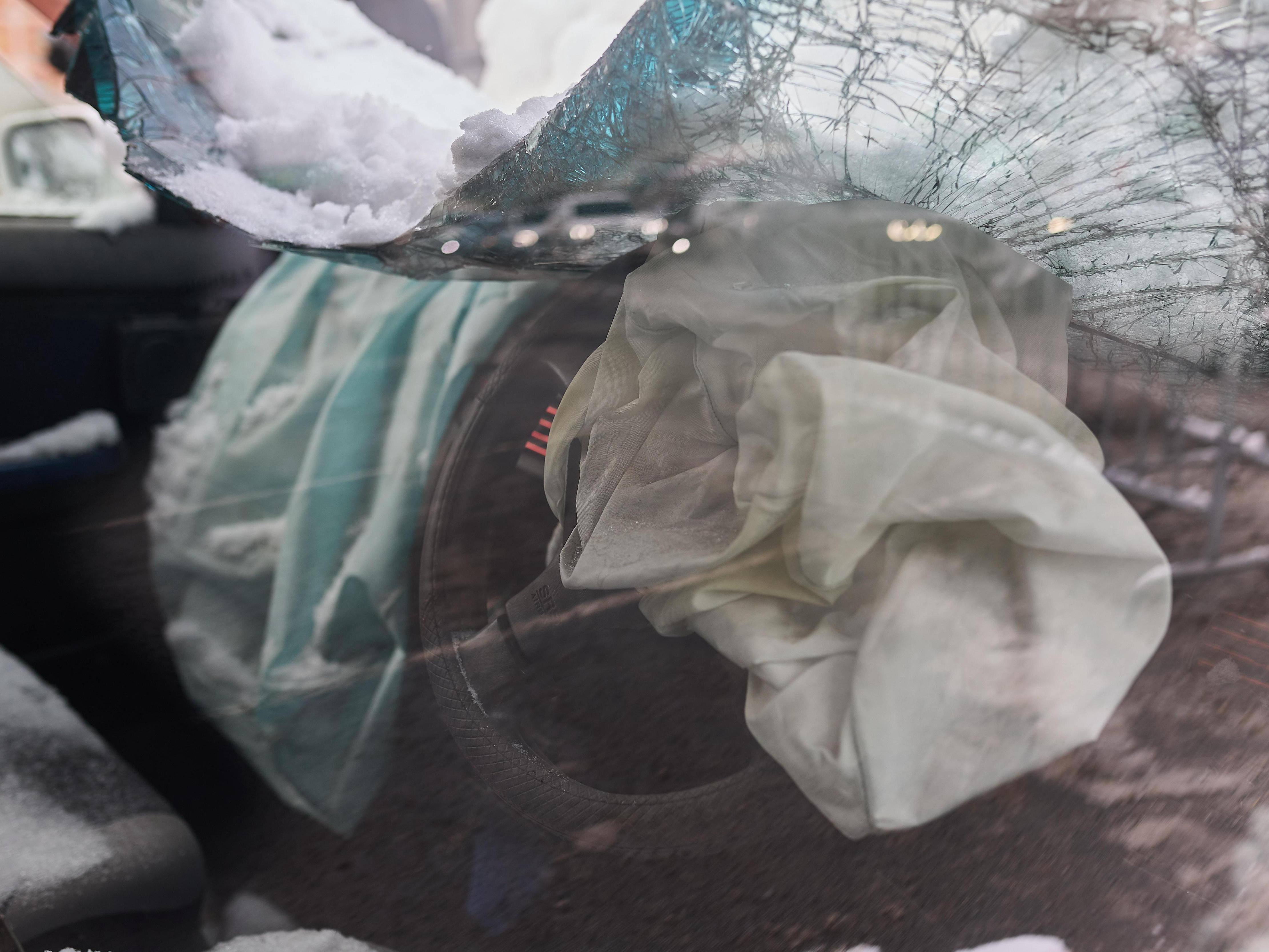 The collision was head-on for the truck — the vehicle crashed into the side of the special equipment vehicle. Due to the accident, the hood was severely damaged, and cargo also spilled onto the road.