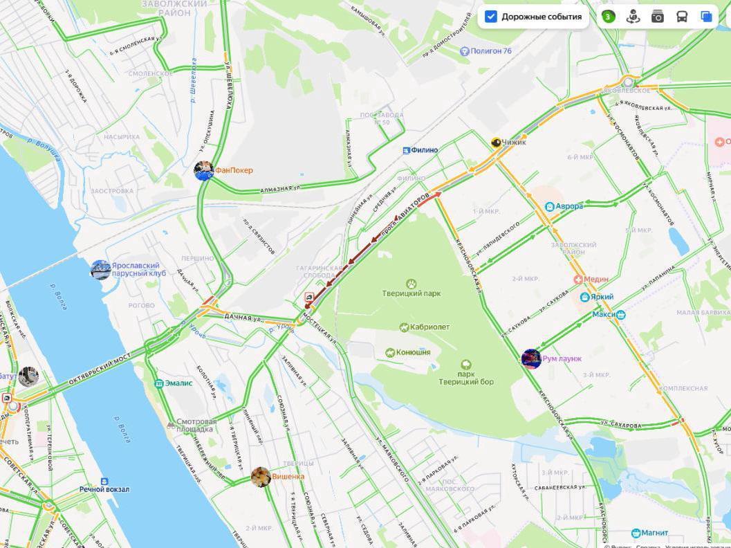 The traffic jam aggregator rated the overall situation on Yaroslavl«s roads as three points.