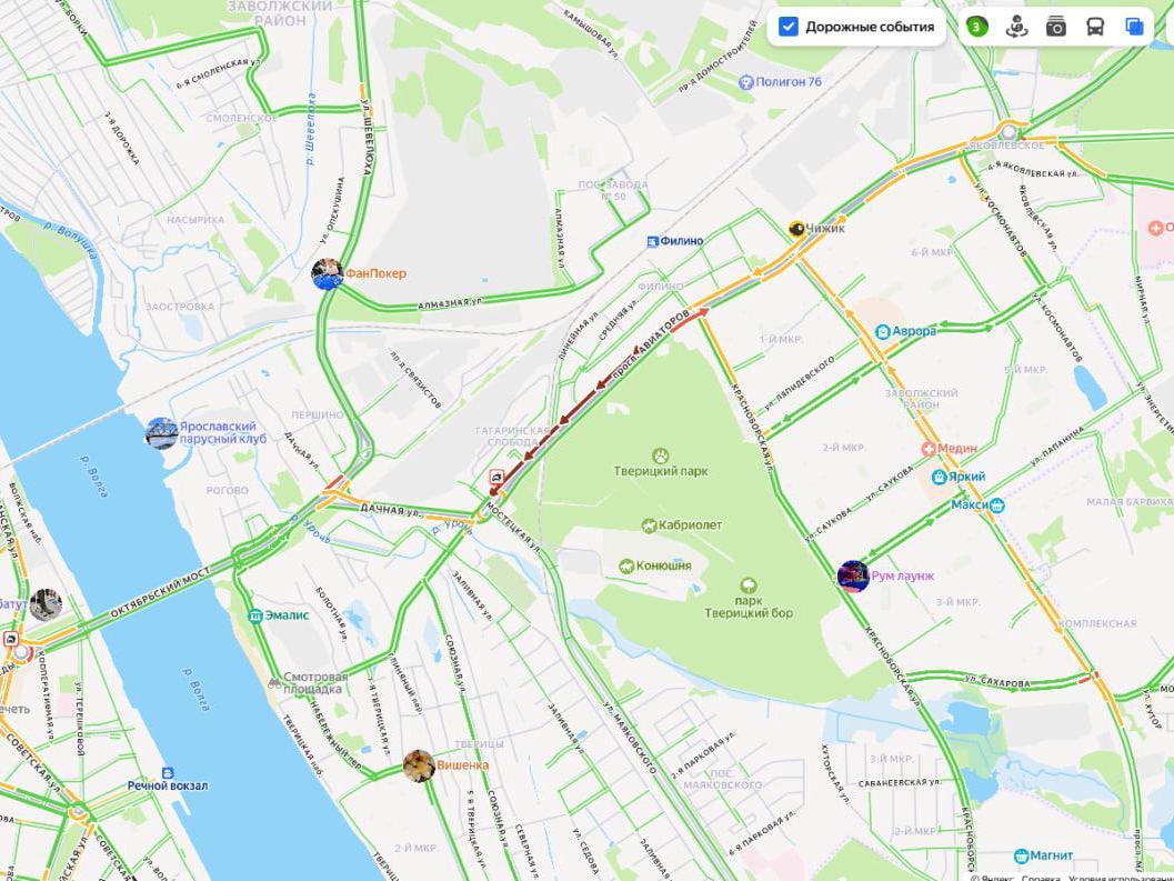 By 11:30, traffic on Aviatorov Avenue remained difficult. According to the service «Yandex.Maps,» the lane towards Dachnaya Street is marked in crimson.