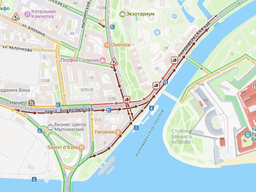 According to information from the service «Yandex», the overall traffic congestion level in St. Petersburg streets in the morning reached 5 points. This indicator was one point lower than the day before and one point below the usual value.
