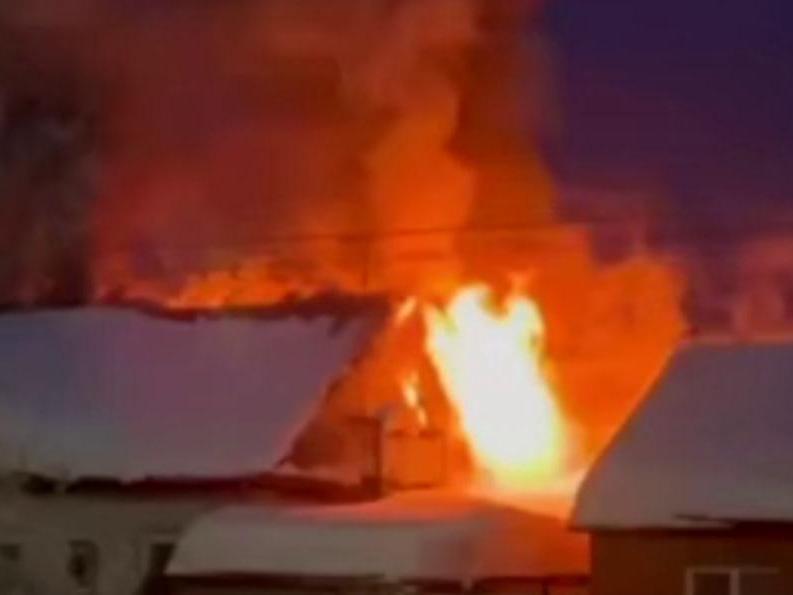 A private home in the Zaeltsovsky district of Novosibirsk caught fire on January 24, with the roof fully ablaze and concerns raised about the occupants' whereabouts.