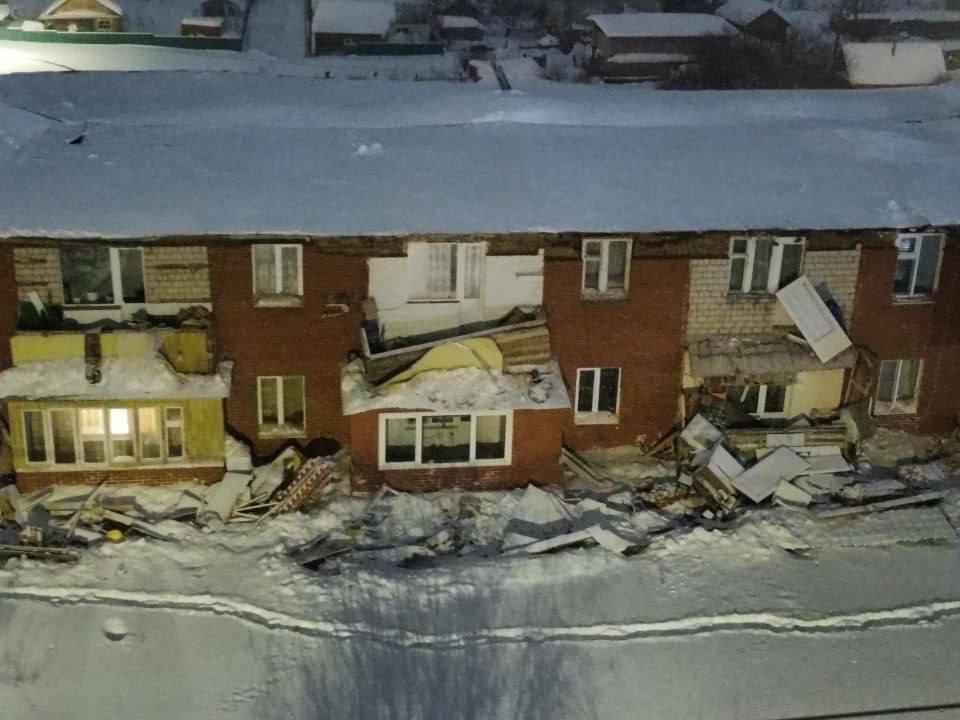 The collapsed building is located on Gornaya Street in the village of Kushnarenkovo.