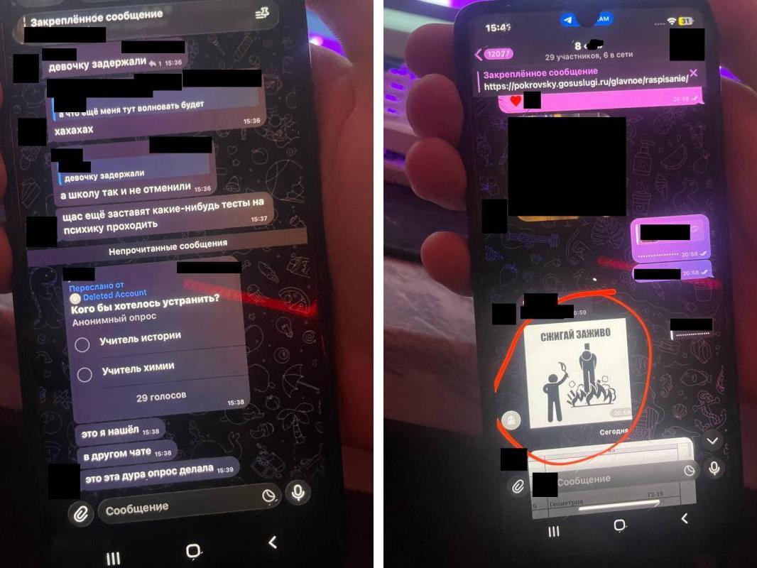 At the same time, it emerged that the day before the attack, in the evening, Lena allegedly conducted a poll in some chat about «who she would like to eliminate». Answer options — «history teacher» and «chemistry teacher». At least, such a message was forwarded by a girl«s classmate to the eighth-graders» chat. But the author«s account has already been deleted.
