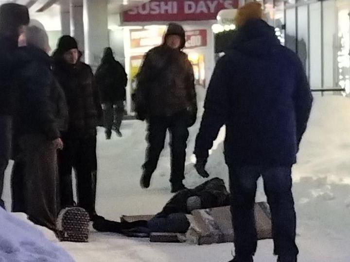 Siberian woman falls on Novosibirsk sidewalk, passers-by call ambulance