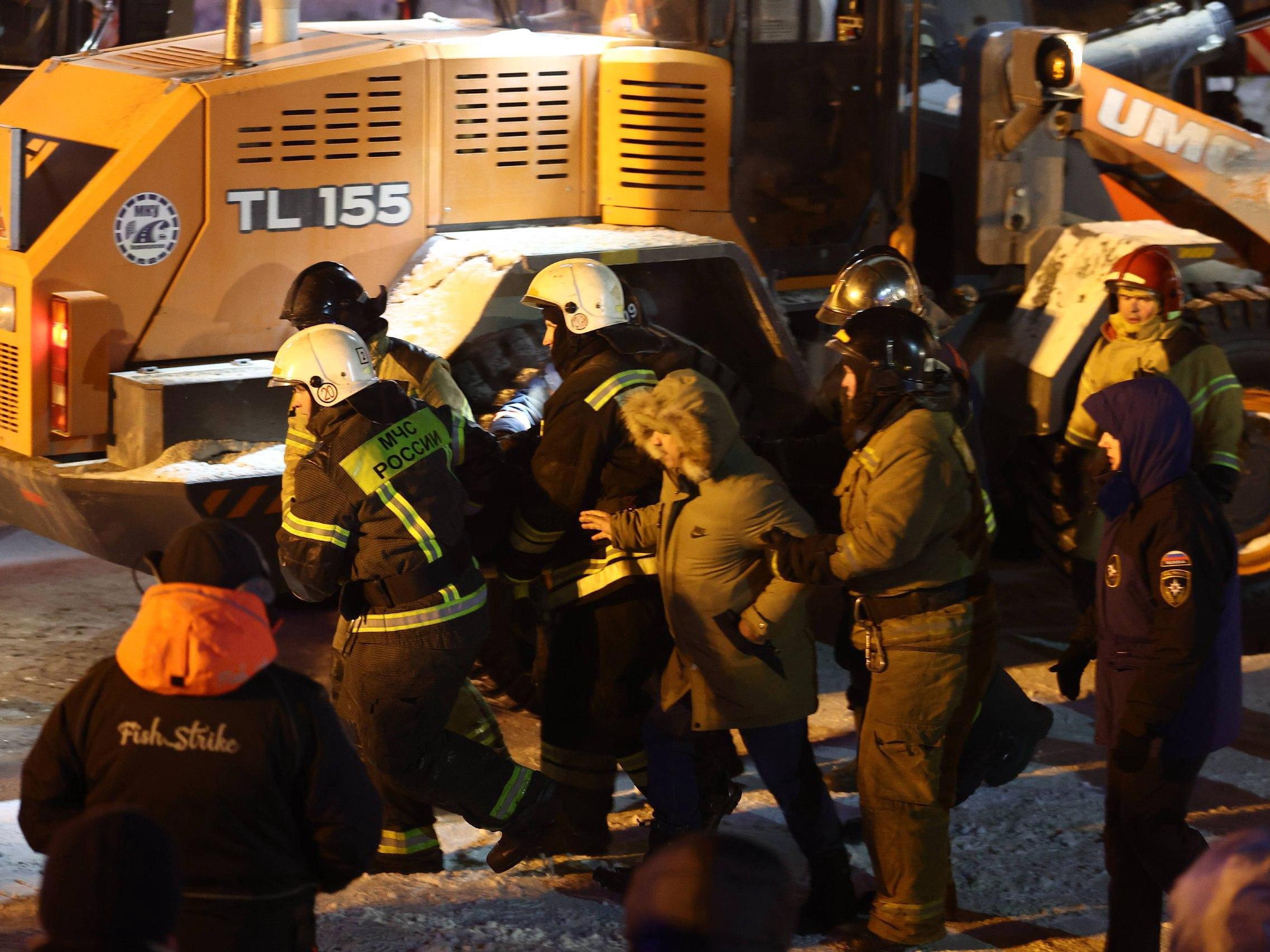 The Ministry of Emergency Situations released video footage depicting the rescue efforts at the site of the shopping center collapse.