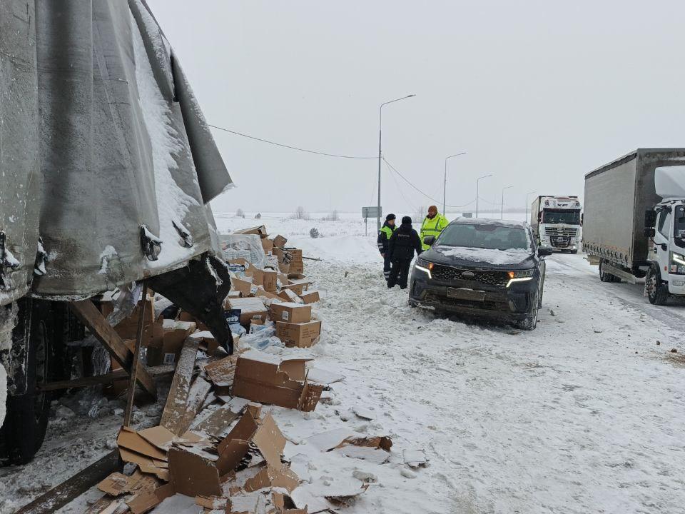 Then, a Volvo truck hit the DAF that had already stopped after the collision. From the impact, it was thrown onto a Kamaz truck driving ahead, and the Volvo veered off into the roadside ditch.