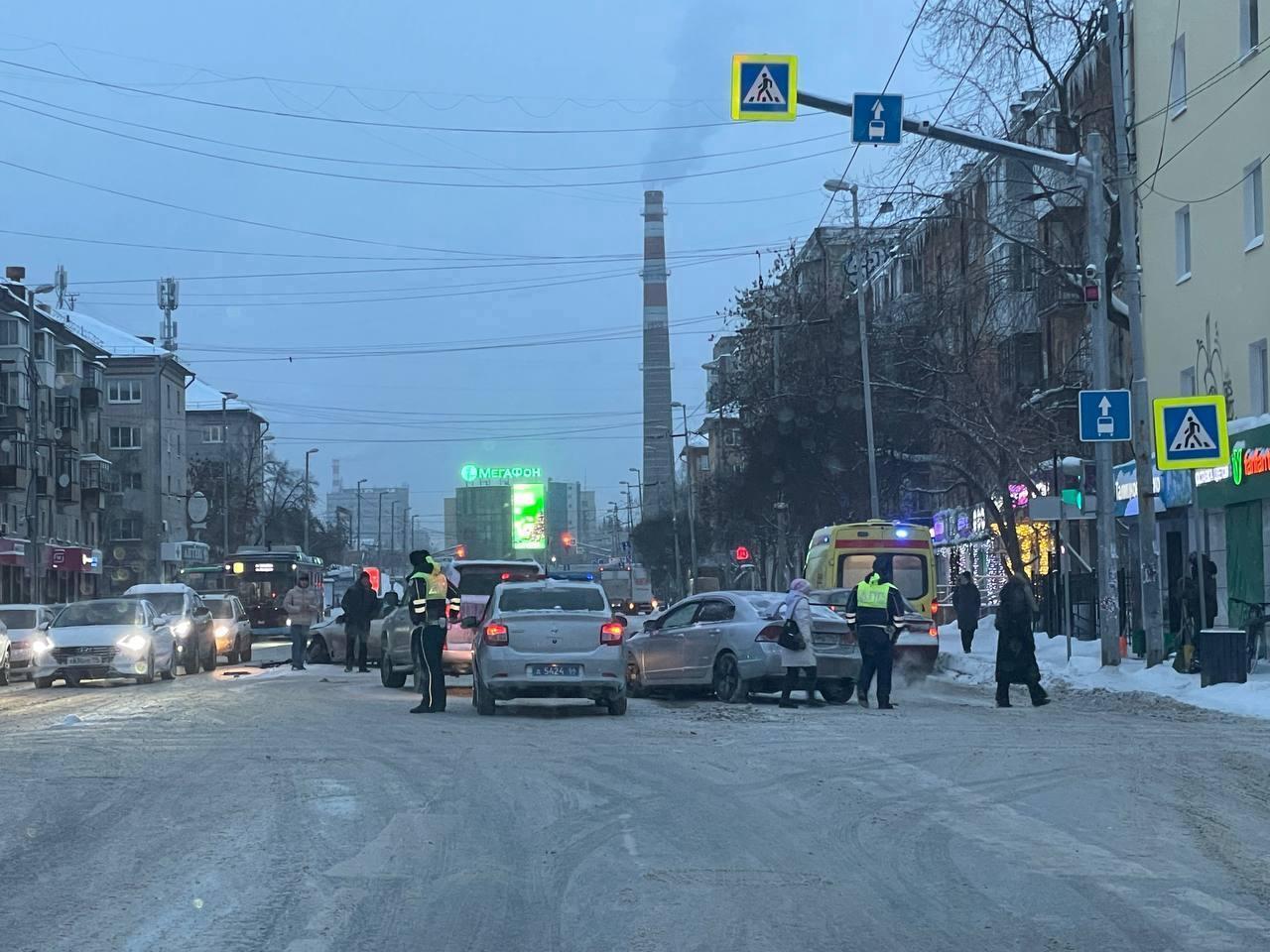 In the morning, at the intersection of Malysheva and Bazhova streets, two cars collided, but according to the State Traffic Safety Inspectorate (GIBDD), there are no casualties.