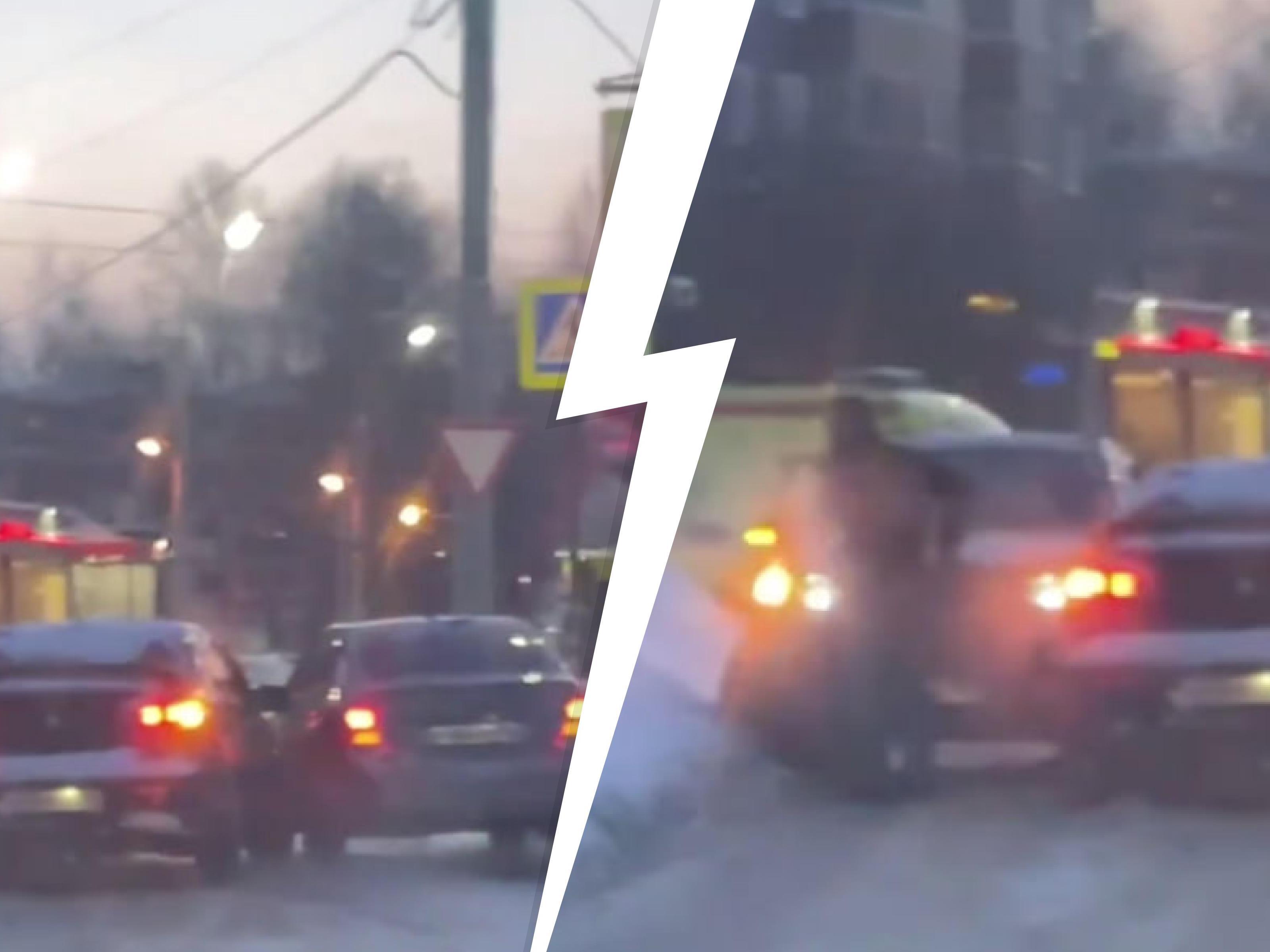 Motorists recorded the scene of the crash that blocked traffic in Yaroslavl.