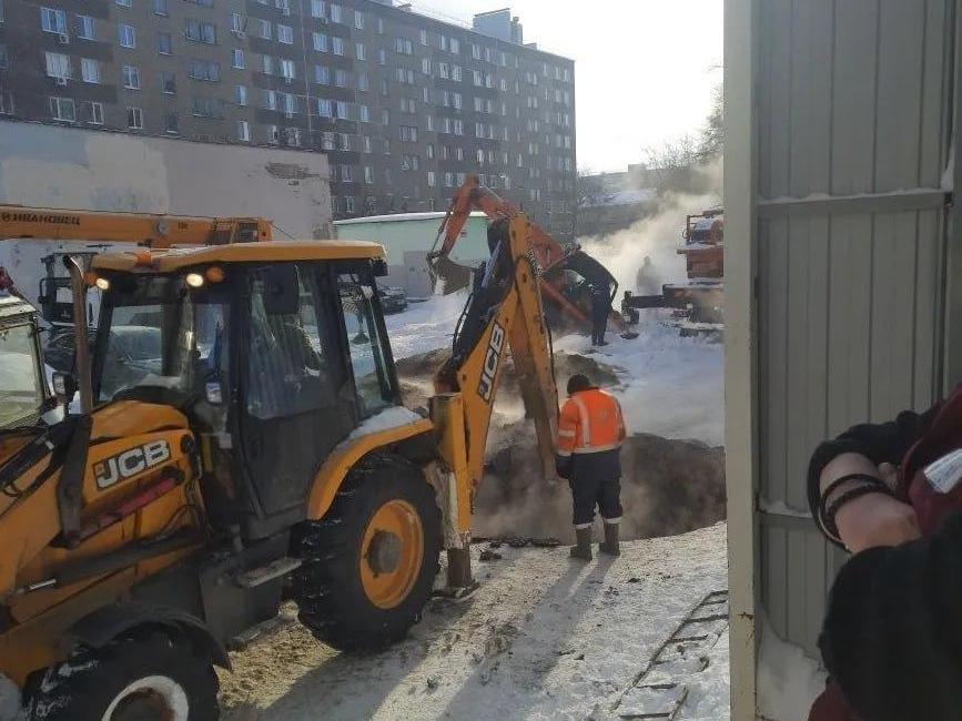 This happened while work was being done on a 100-mm diameter pipeline. House No. 73 is left without water. Specialists from the water utility were fixing the damage when the ground suddenly collapsed, and the tractor ended up in the resulting pit.