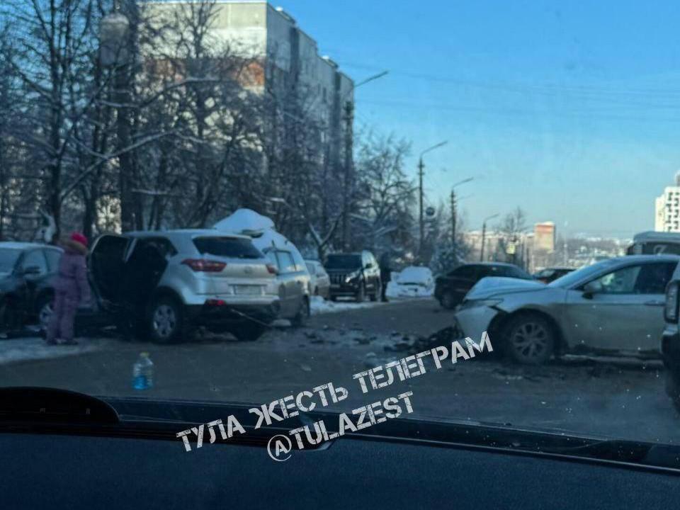 A four-vehicle collision has blocked traffic on Khvorostukhina Street in Tula, with eyewitnesses reporting the road is effectively closed.