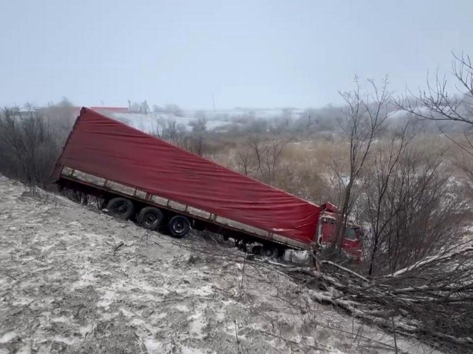 Restrictions have been introduced on a section about 1.5 kilometers long in the area of Orlovsky Spring. The press service of the Main Directorate of the Ministry of Internal Affairs of Russia for the Volgograd Region clarified that rescuers are working at the site, eliminating the consequences of the accident: a Mercedes truck with a semi-trailer veered into a ditch.
