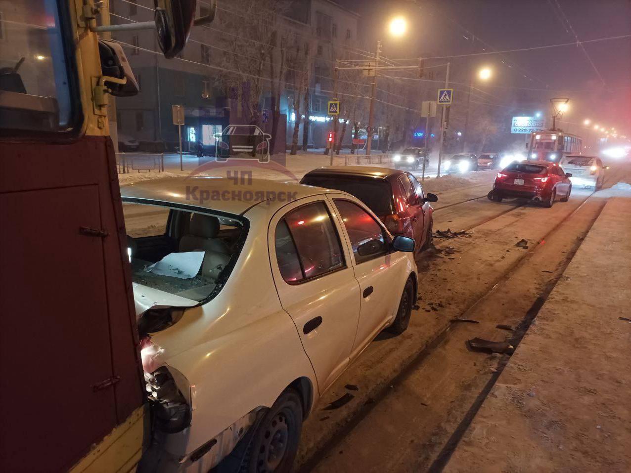 Tram Crashes into Three Cars on Krasnoyarsk's Right Bank