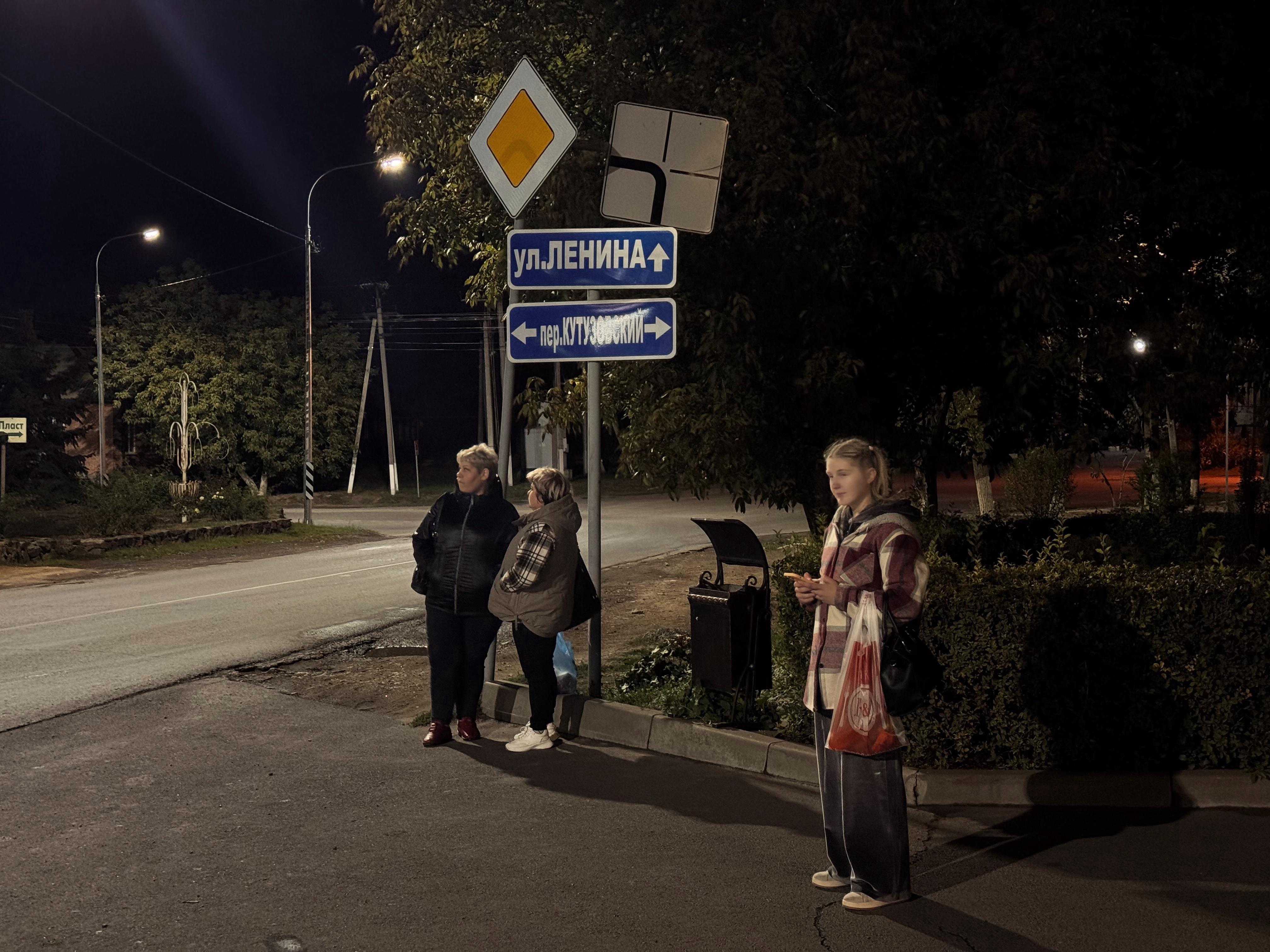…Evening thickens over Nikolaevka. The hole in the house has been covered with plastic sheeting to at least keep in the warmth and protect the home from outsiders. Along Lenin Street and Kutuzovsky Lane, passenger cars race by and buses roll past. The markings of the only pedestrian crossing are painted by the nearest stop.