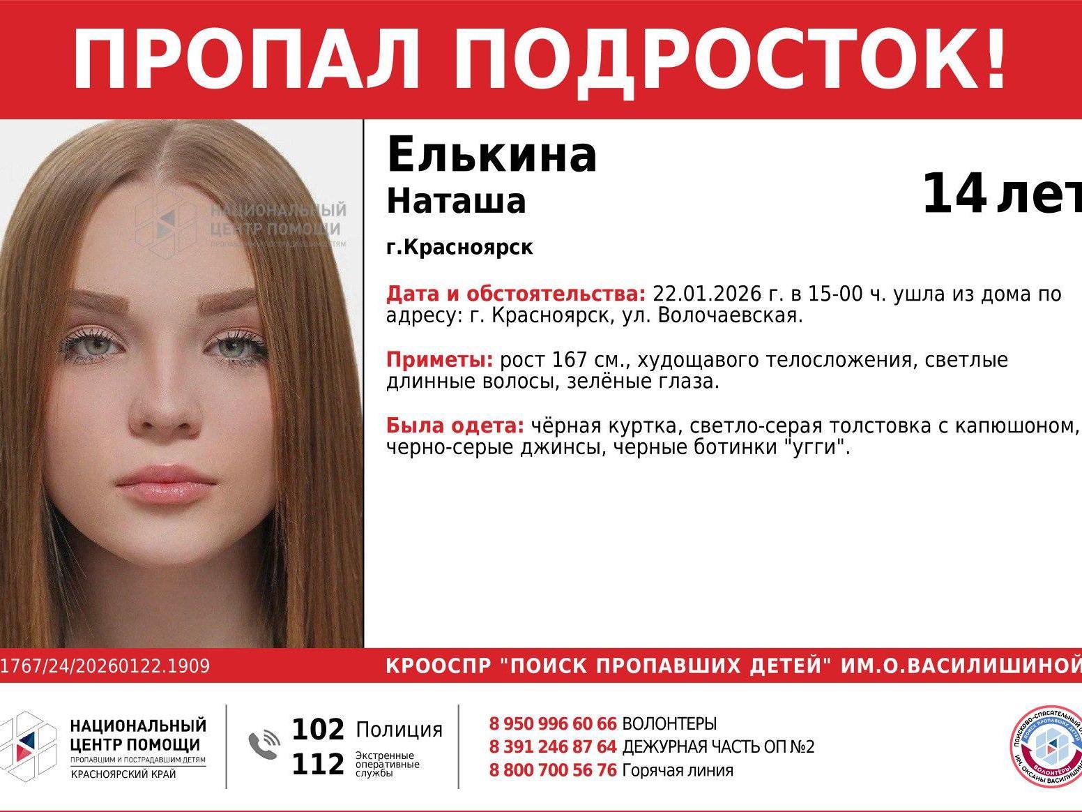 That same evening, along with the youth, 14-year-old Natalia Yelkina disappeared in Krasnoyarsk. She left home at 3:00 PM. Since then, no one has seen her. Currently, police are determining if the two cases are connected.