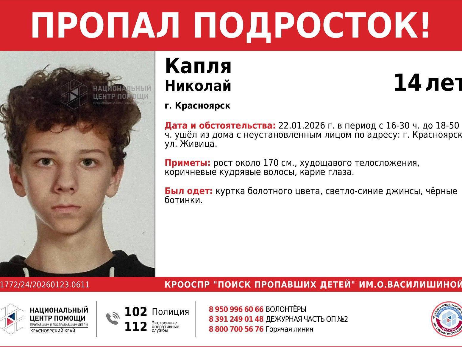 Two 14-year-old teenagers disappeared in Krasnoyarsk on the same day, with one leaving alongside an unknown individual captured on surveillance footage.
