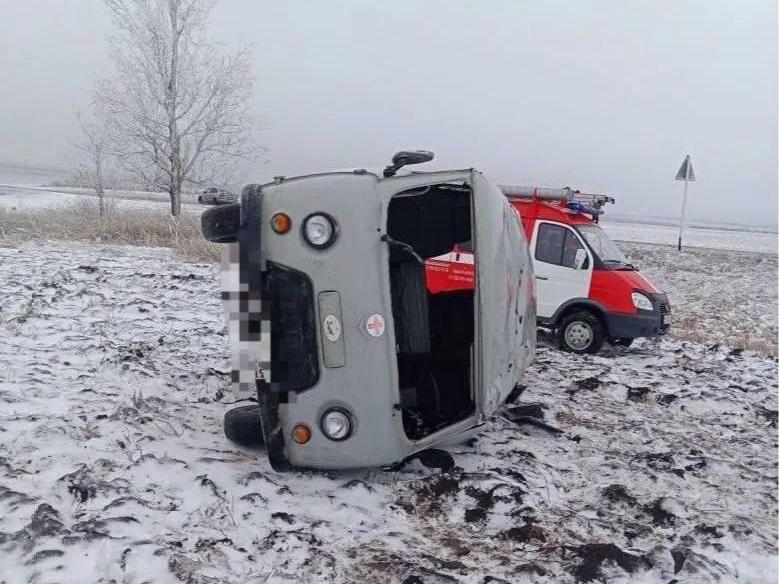 On Saturday around 10:50, a 31-year-old driver of a medical UAZ was traveling from the direction of the Khutor Sredny, but lost control and drove off the road. Then the vehicle overturned, and 4 people were injured.