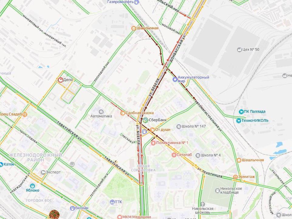 A serious traffic jam has already formed at the scene. Everyone is trying to bypass the crashed cars. Traffic is difficult toward the Sorterovka district.