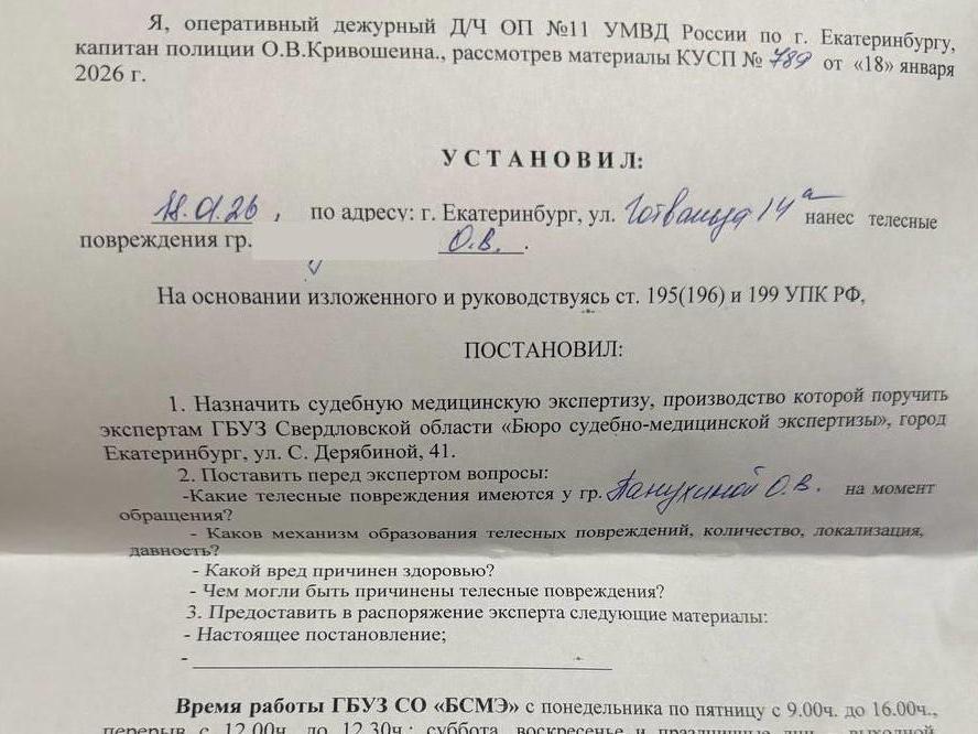 The city police department reported that they have begun a check on this case. Olga was referred for a medical examination.
