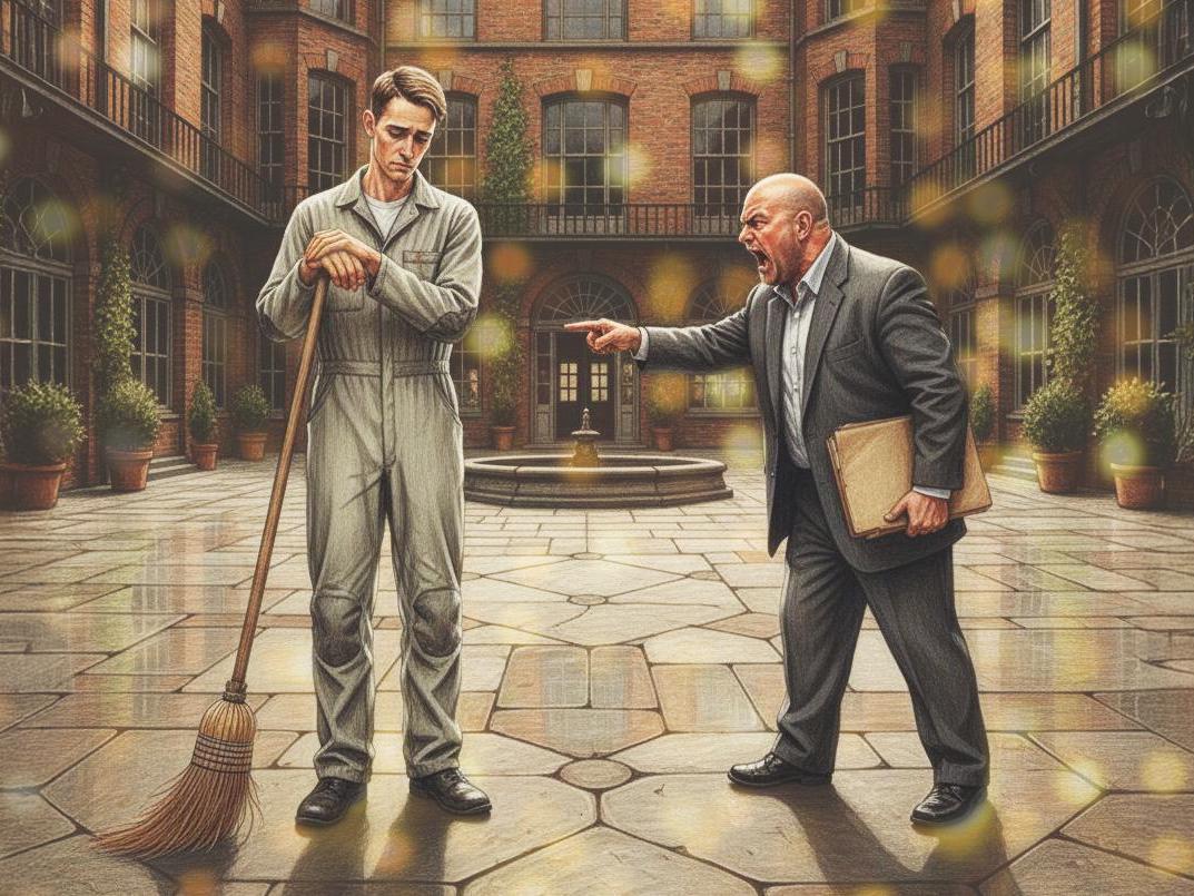 At the same time, when higher management arrives, my boss behaves quietly and plays the role of a servant. If you can«t afford to be rude to your boss, don»t be rude to a janitor either.
