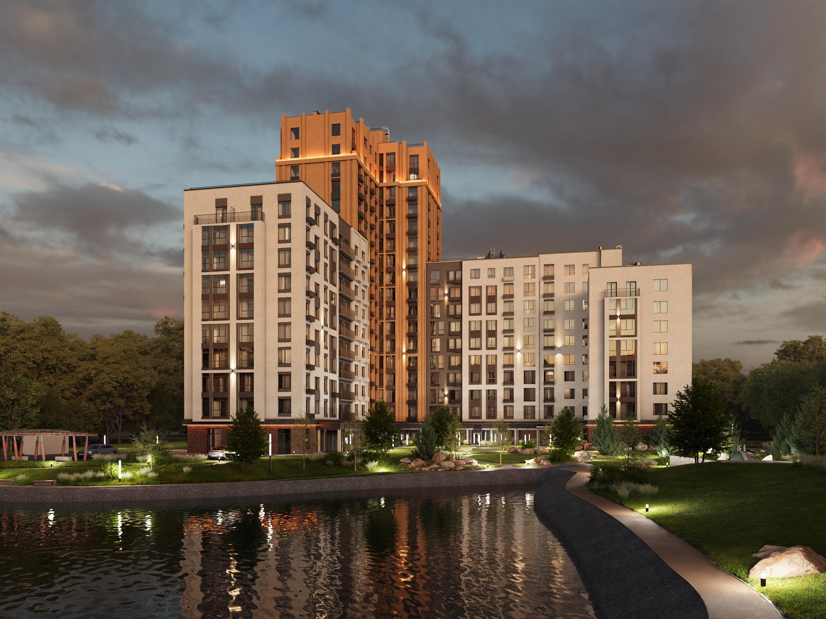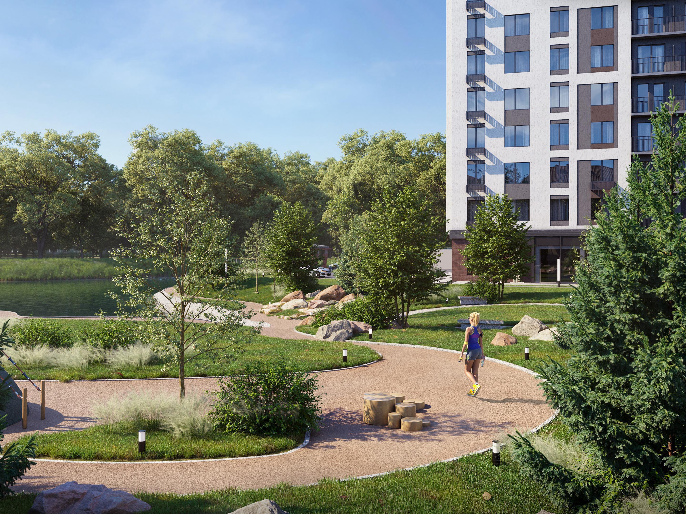A special value added to the project is its own lake in the yard. The developer will carefully preserve the existing pond with its ecosystem and the ducks living there, improve the territory, and harmoniously integrate it into the created courtyard. The natural landscape will be gently supplemented with lighting, benches, a pier — to create a picturesque waterfront recreation spot for the building«s residents and city dwellers.