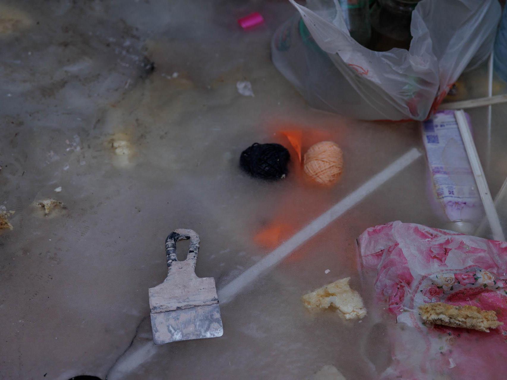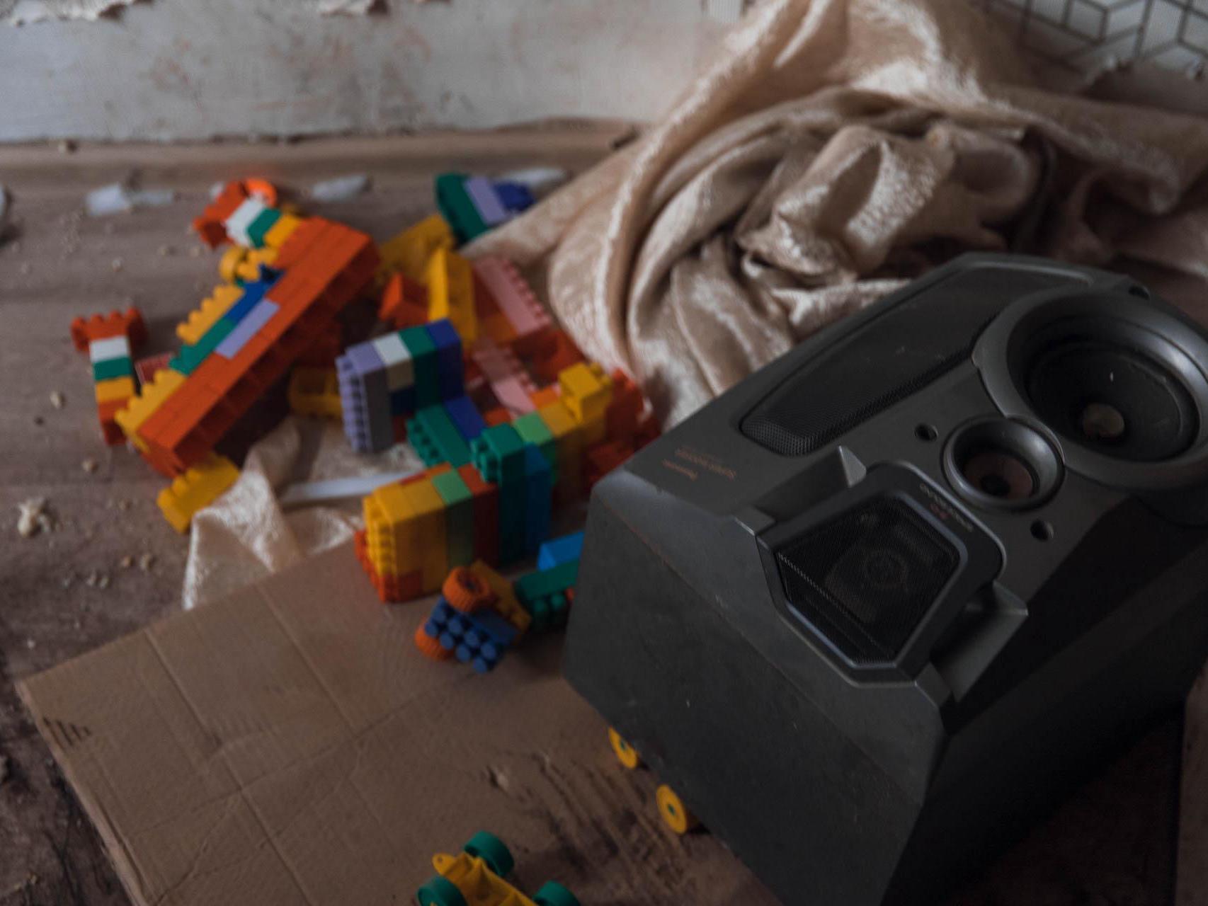 The small apartment is a mess. The windows are removed, the cold pierces to the bone. In the room stands a half-disassembled wardrobe with a few clothes remaining. Light barely penetrates: someone has thoughtfully placed furniture against a hole in the wall through which the sun used to illuminate the small space. On the floor lies a children«s construction set.