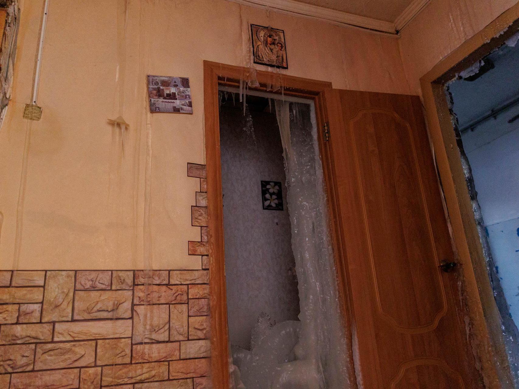 — We had everything until the end, both heating and water. There was even an electric heater in the room. Apparently, when they ripped out the washing machine, they damaged the water — and now on the first floor there is a huge column of ice, — the woman says.