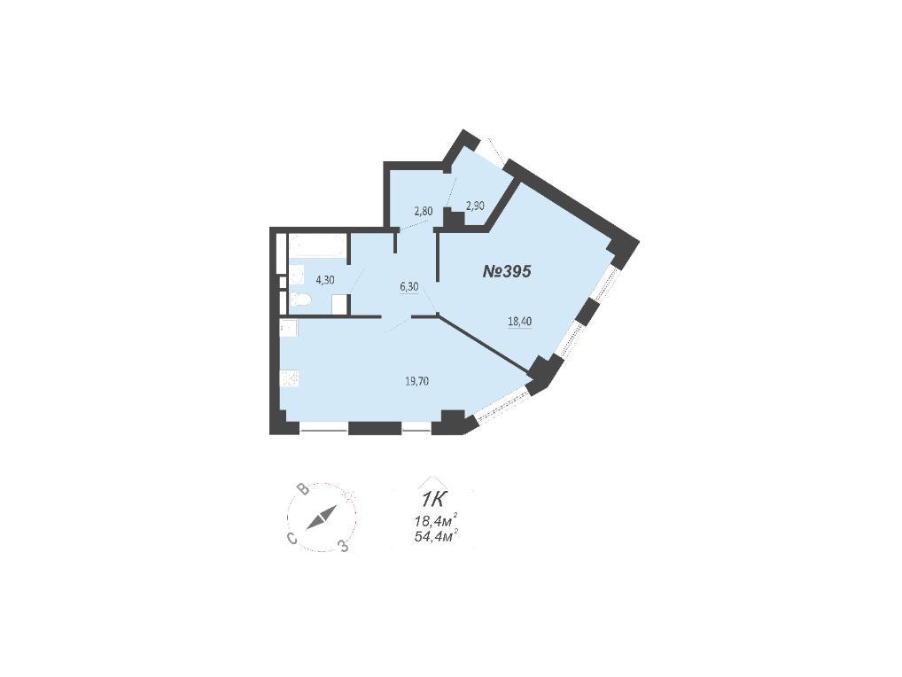 The apartment with a separate entrance looks especially interesting. Its area is 54.4 square meters, the spacious kitchen-living room has as many as three windows, and there are five in total. An unusual feature of the apartment is three hallways.
