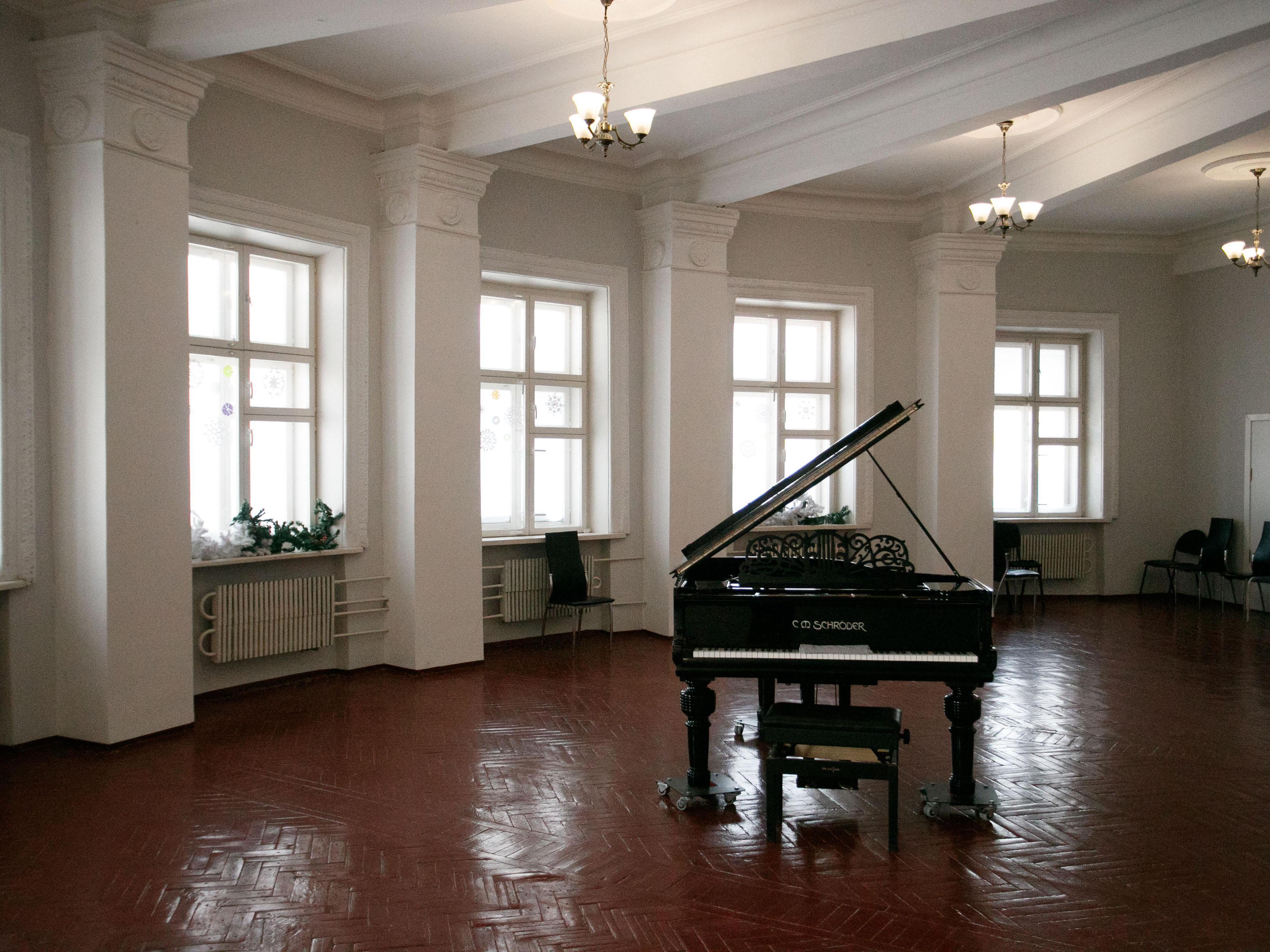 The small hall has changed much more—previously, in its place was a gym. Now the walls are adorned with portraits of great art figures, and on the largest photograph—the orchestra of Arnold Katz. This space is often rented out, because the building cannot be sustained by children«s education alone, its owners admit. It costs several million rubles per month.