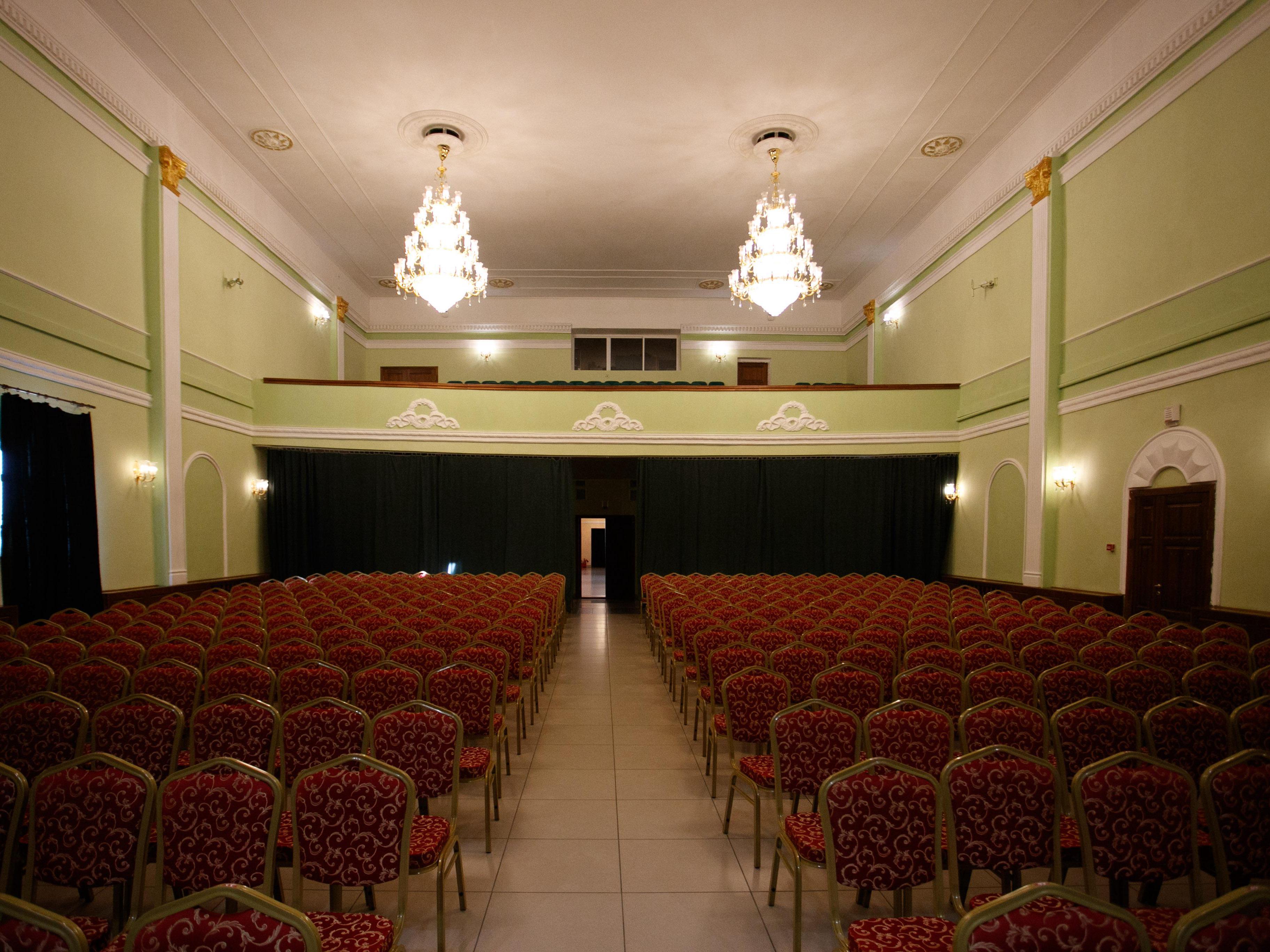 For concerts, the building has two halls: small and large. The interior of the latter has hardly changed after the repair—only huge chandeliers and pilasters have reappeared.