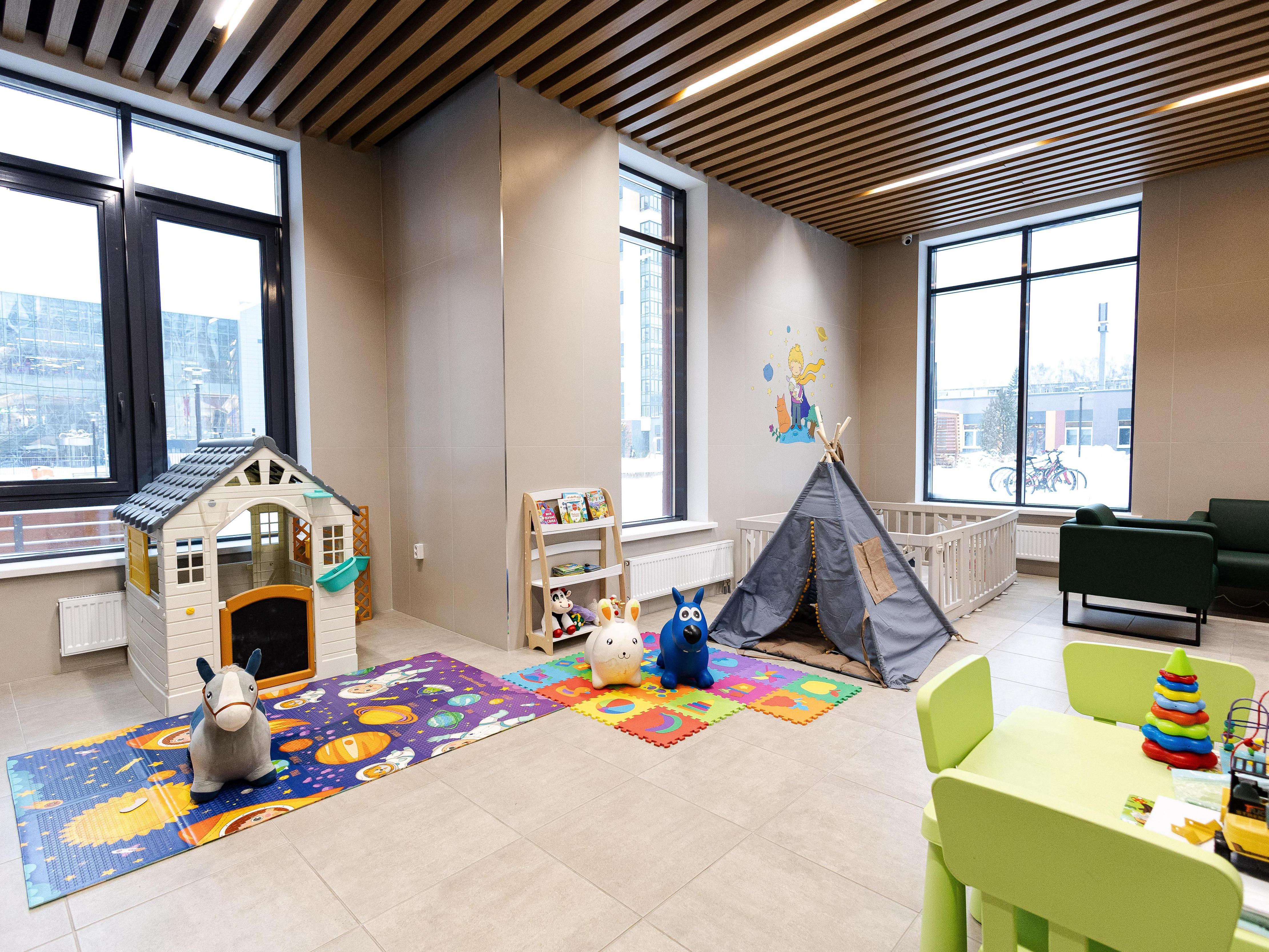All buildings are united by a closed courtyard with play and sports areas, walking paths, and places for quiet rest. Here, the cheerful laughter of children is heard every day, even in cold weather. Since there are no cars or outsiders in the yard, parents only occasionally glance out the window while doing household chores.