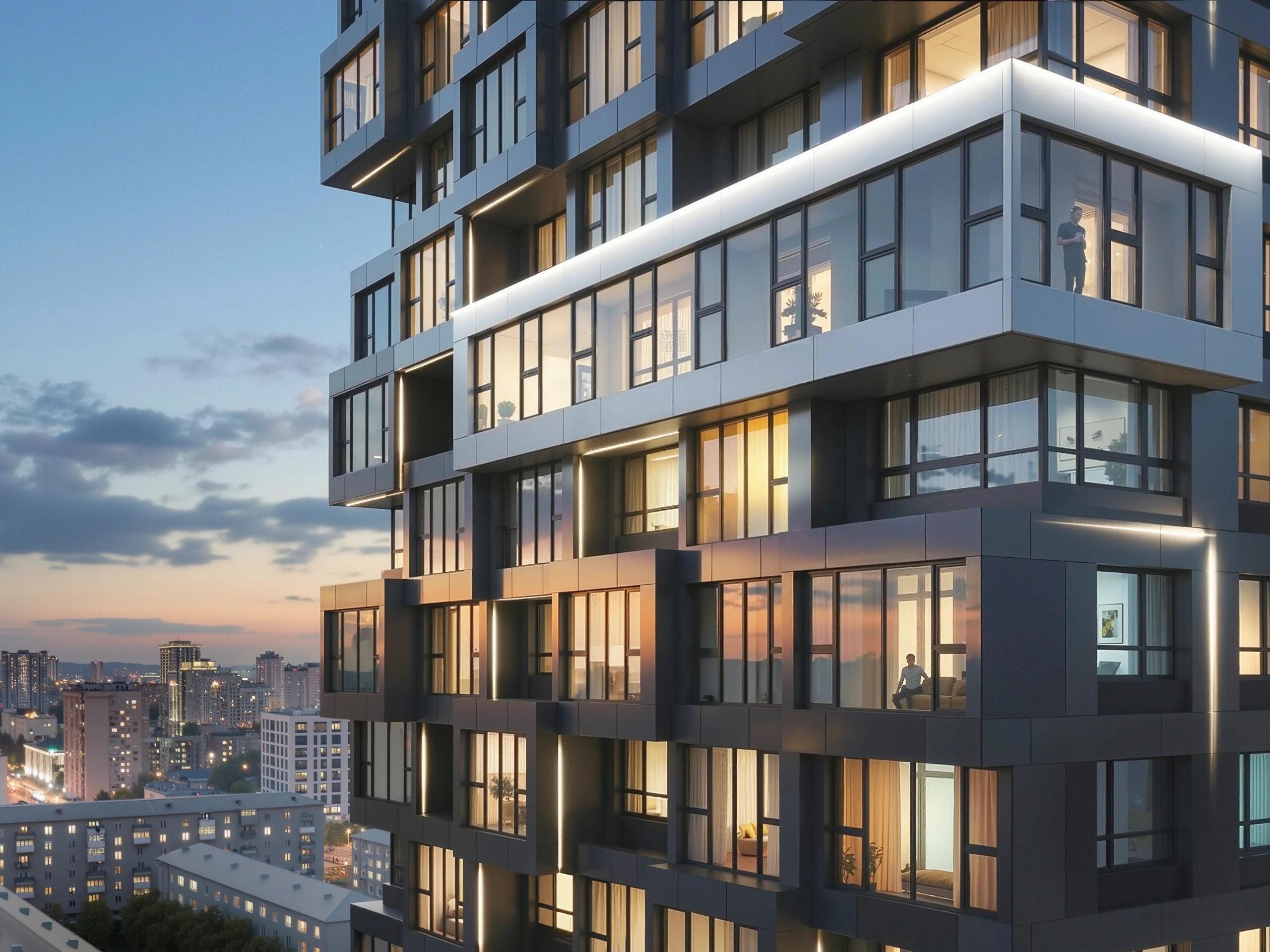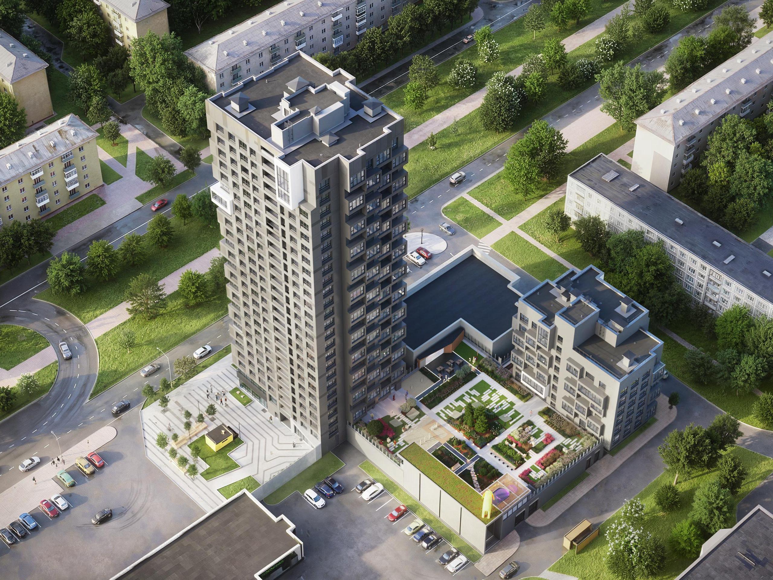 A stylish duo of buildings, 25 and 8 stories high, will harmoniously fit into the urban context and become one of the area«s most notable architectural landmarks. The strict aesthetic of the facades combined with increased glazing area will attract attention, especially in the evenings when enhanced by effective lighting.