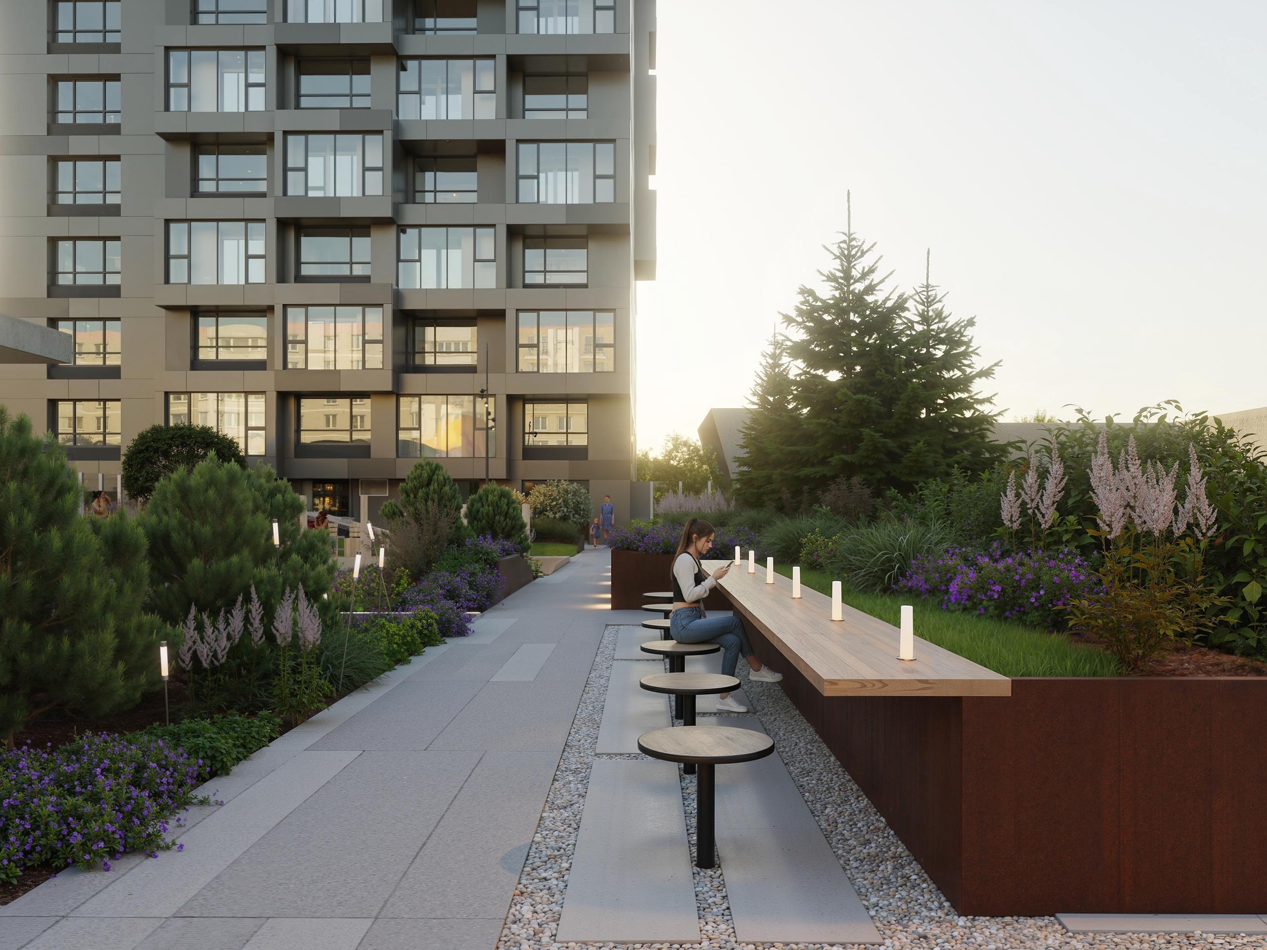 The well-appointed courtyard, space for walks and outdoor activities promote the popularity of sports and an active lifestyle.