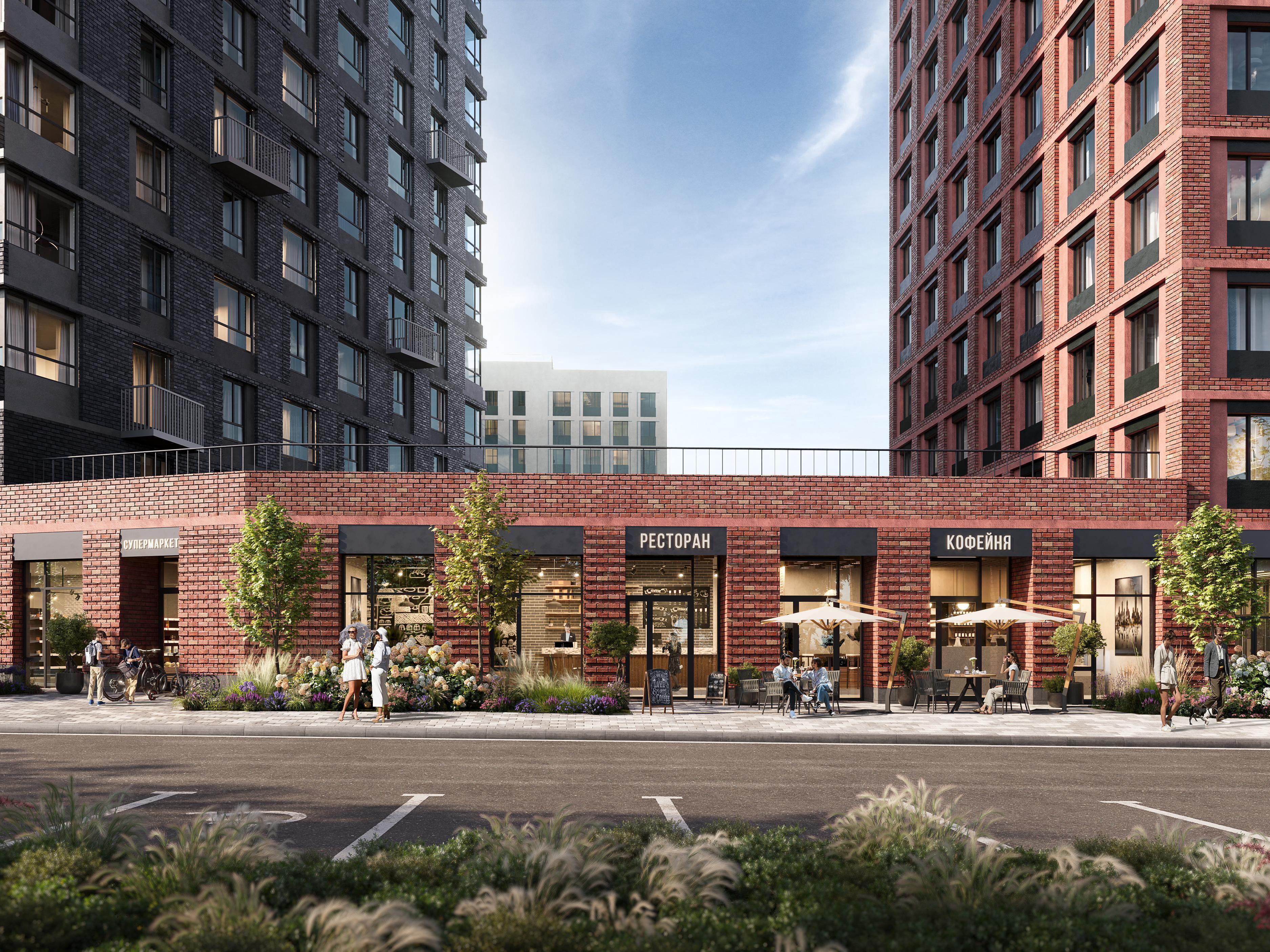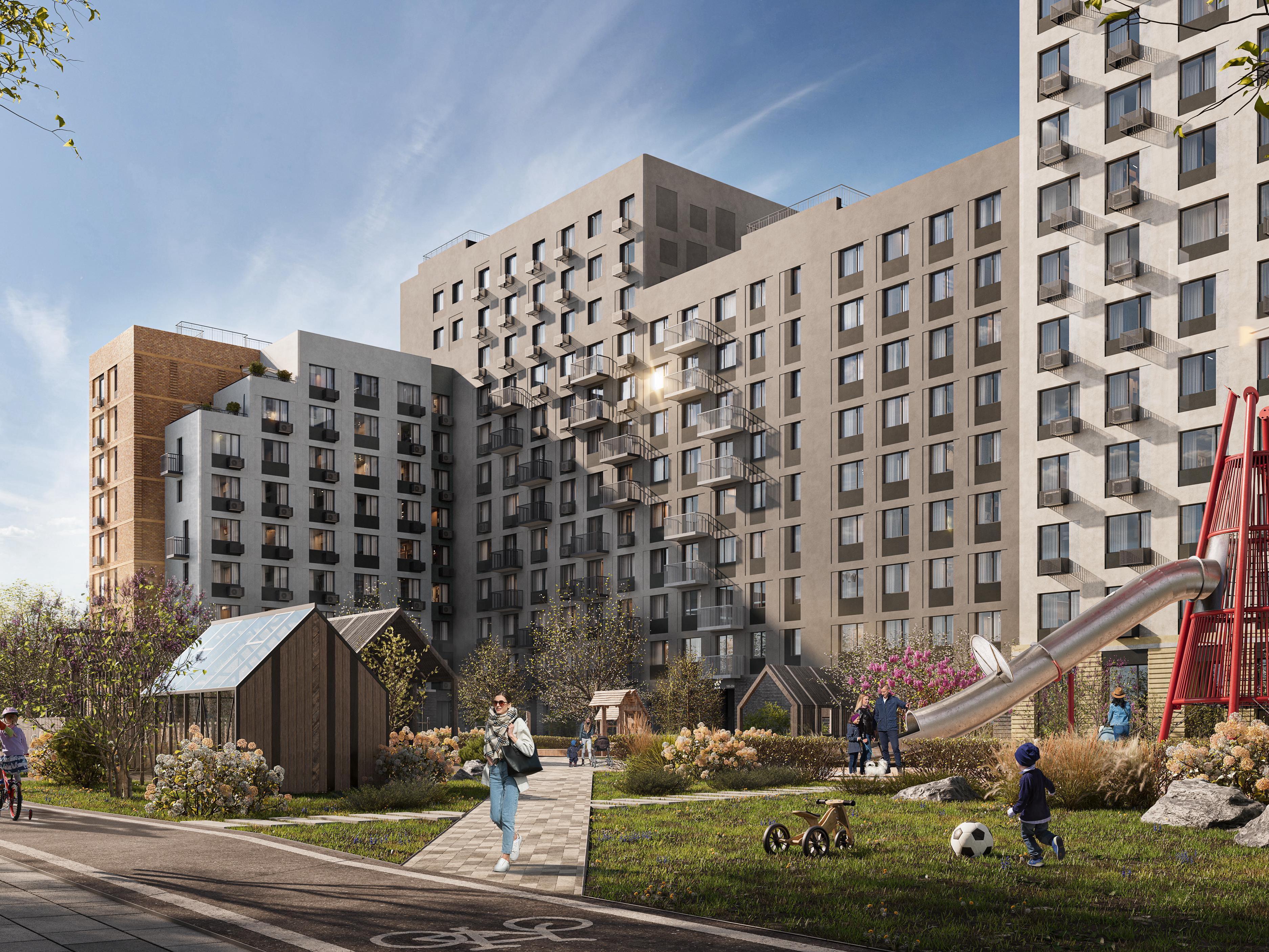 Strolling pedestrian boulevards inside the residential complex link the houses into a single ecosystem. Noisy playgrounds and a large sports cluster with a mini-football field, table tennis tables, and a workout area with exercise equipment have also been placed there. This space will be framed by evergreen plants and trees.