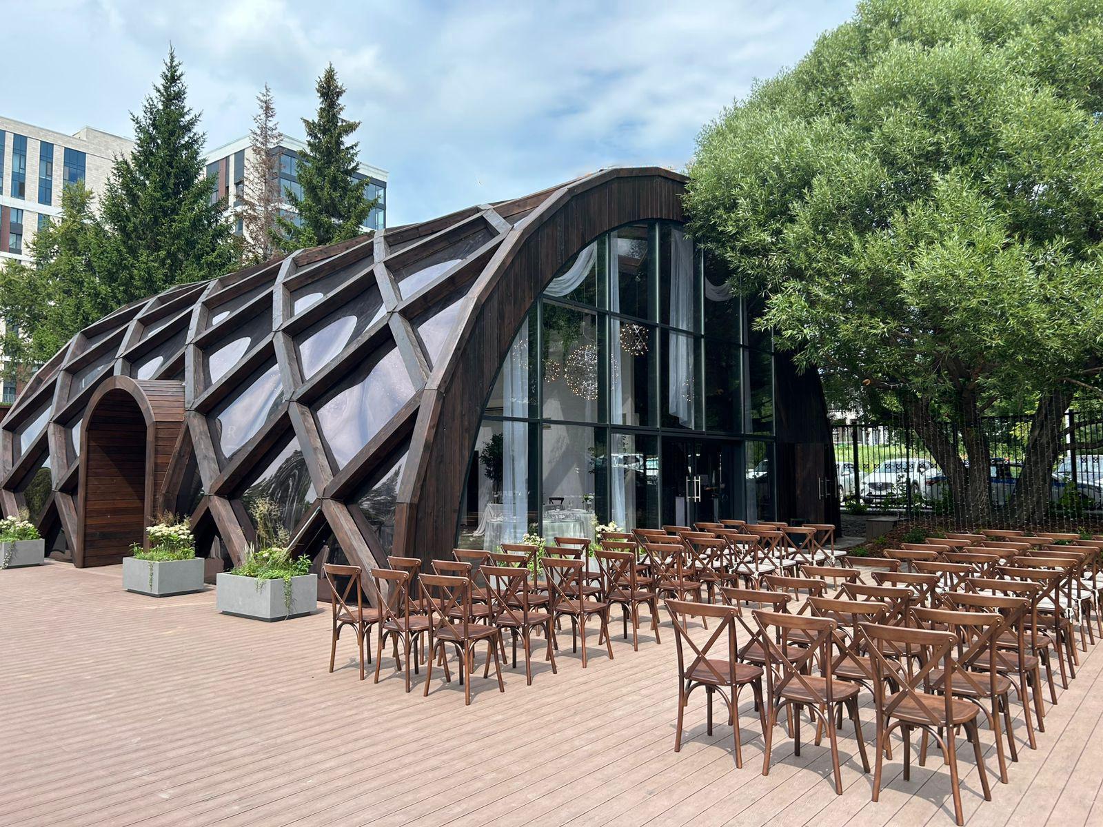 Next to the hall, there is a beautiful area for outdoor registration or a welcome zone*—when ordering a banquet, it is provided as a gift.