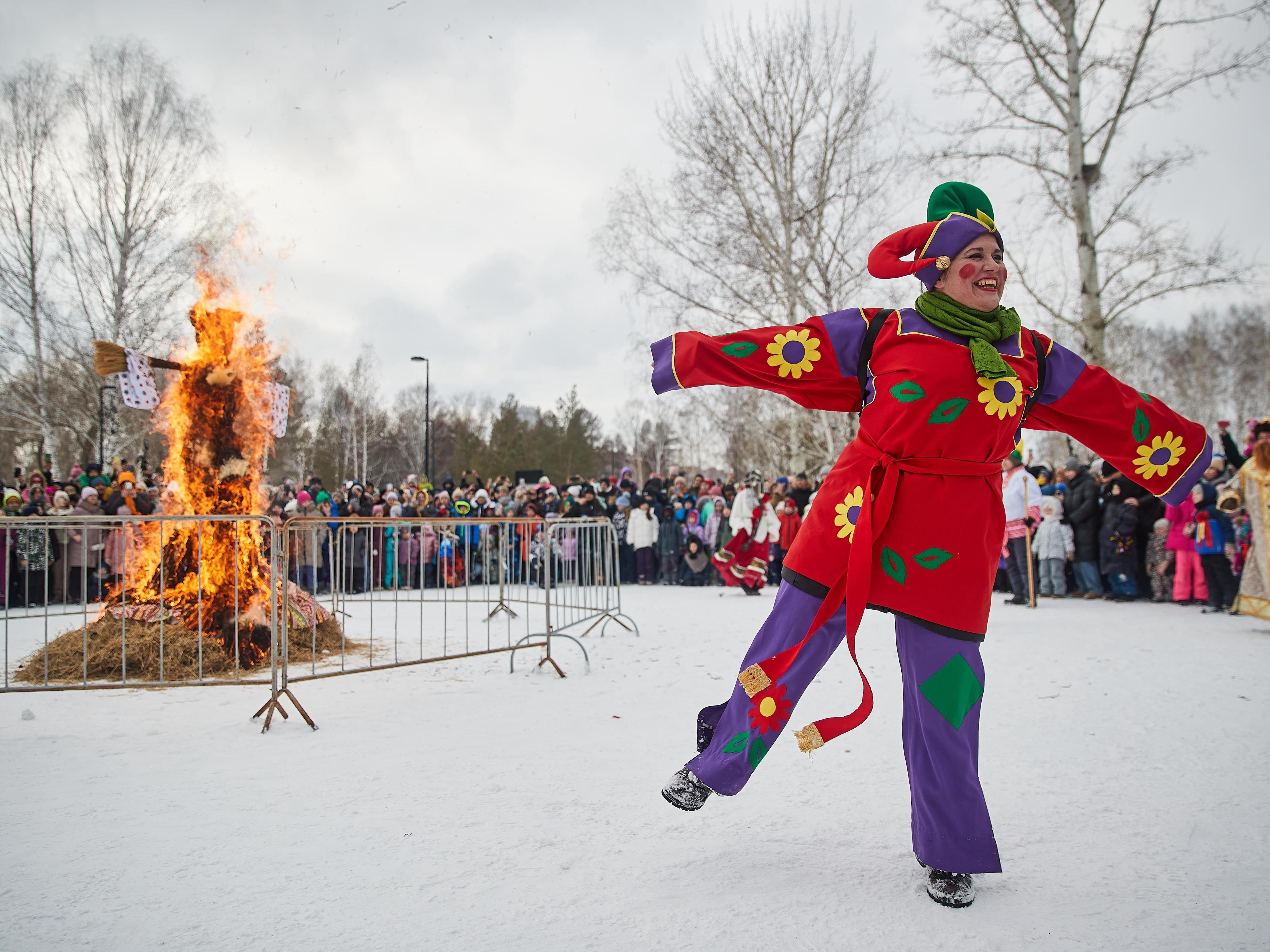 One of the key rituals of Maslenitsa involves burning a ceremonial effigy to mark the end of winter.