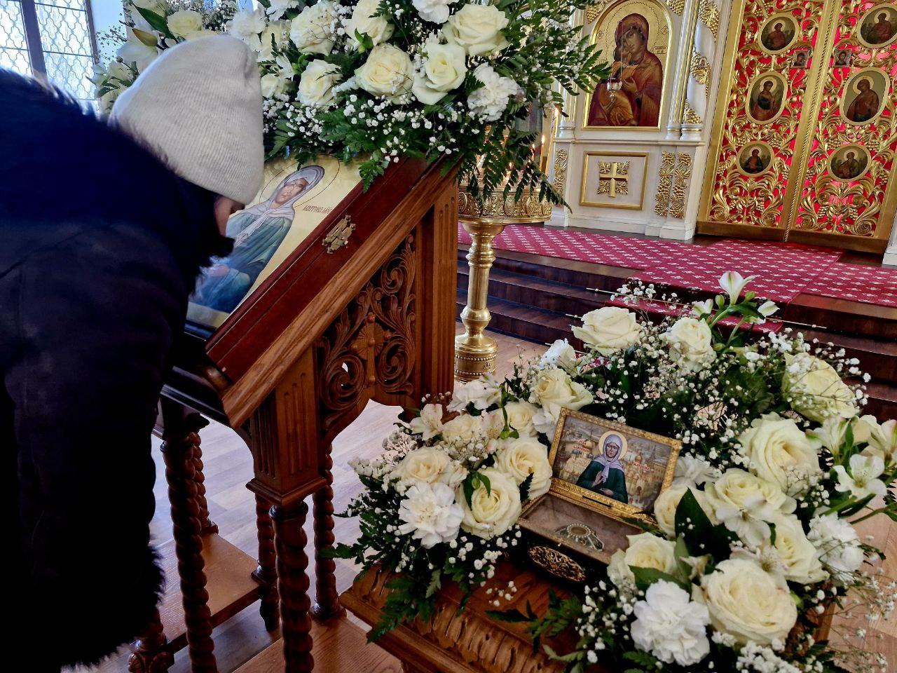 The relics of Saint Matrona of Moscow are permanently kept in the Pokrovsky Stavropegial Convent in Moscow. This is one of the main pilgrimage centers, where long queues often form. People turn to her with requests for healing from illnesses, help with family problems, finding a spouse, having children, achieving financial well-being, as well as for wisdom and comfort. Hundreds of thousands come to venerate her relics. In Saratov, it became possible to touch a particle of her relics right after the Feast of the Epiphany.