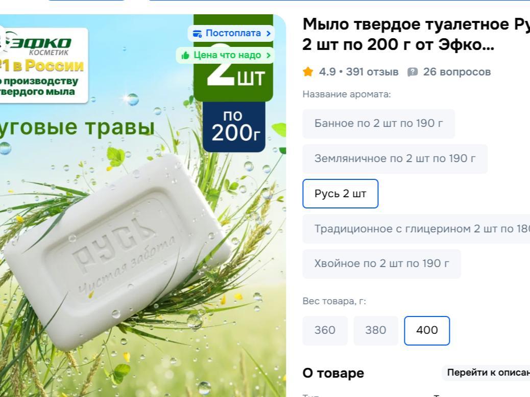 Now, in the advertisement for soap «Rus» on the marketplace, the message about halal is no longer present.