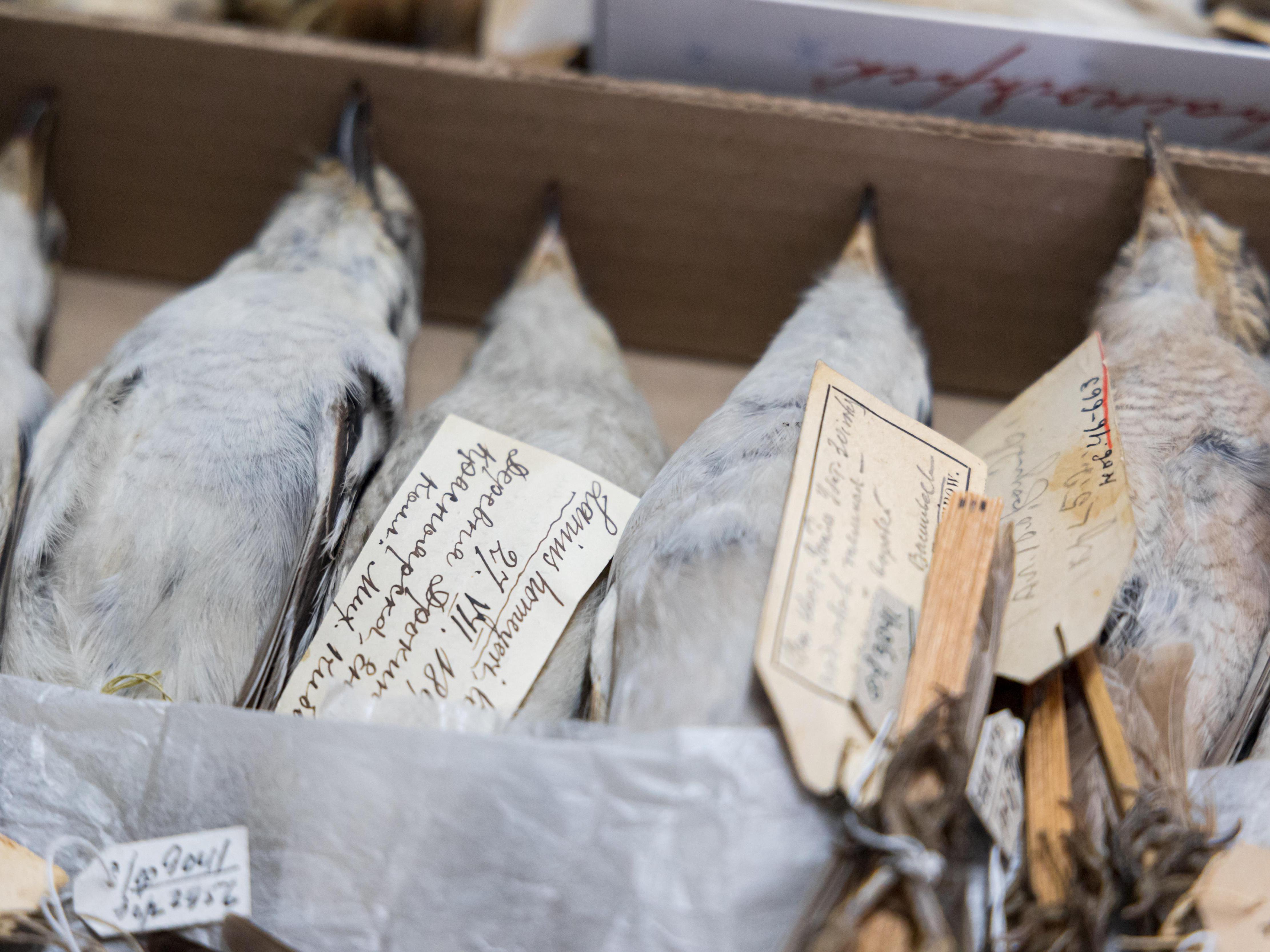 — For a long time and in different years. To not be baseless, I take any exhibit and look. Bluethroat — February 12, 1889. Here«s another — this one from the early 20th century. To accurately describe a species, a series of individuals is collected. That»s why there are so many of each.