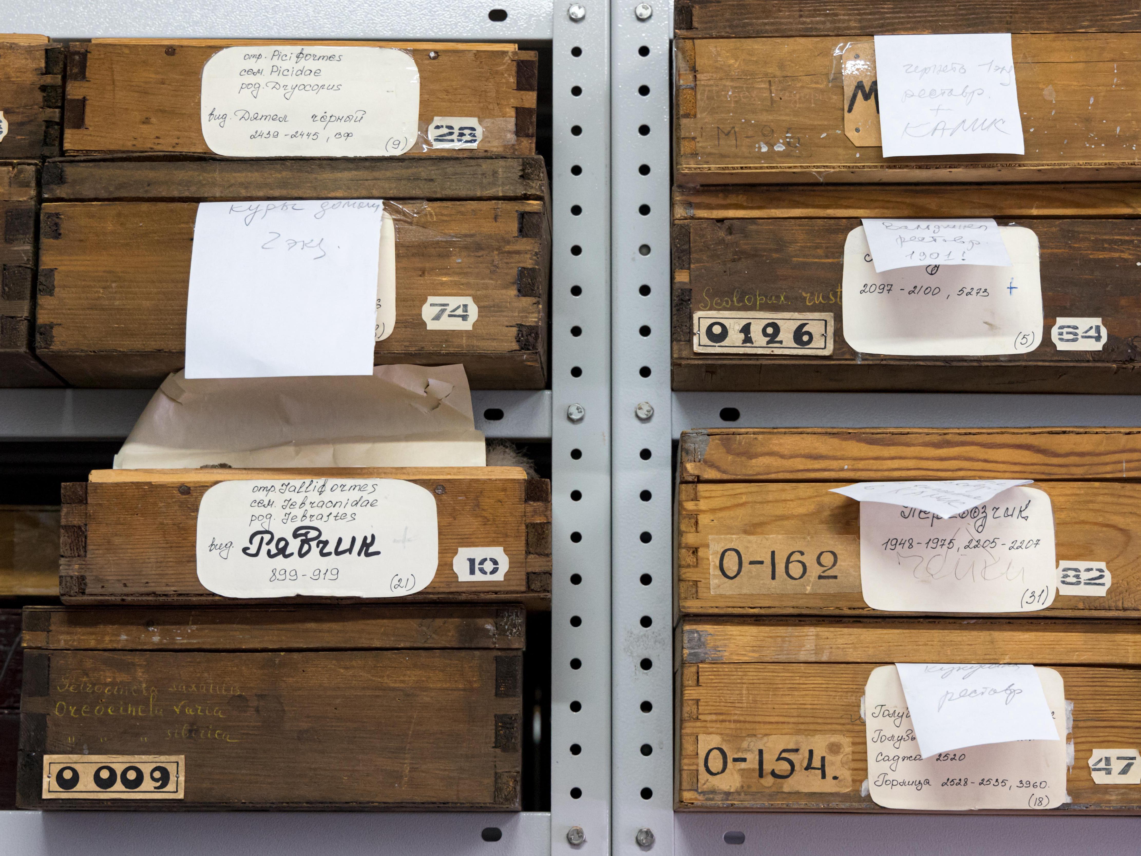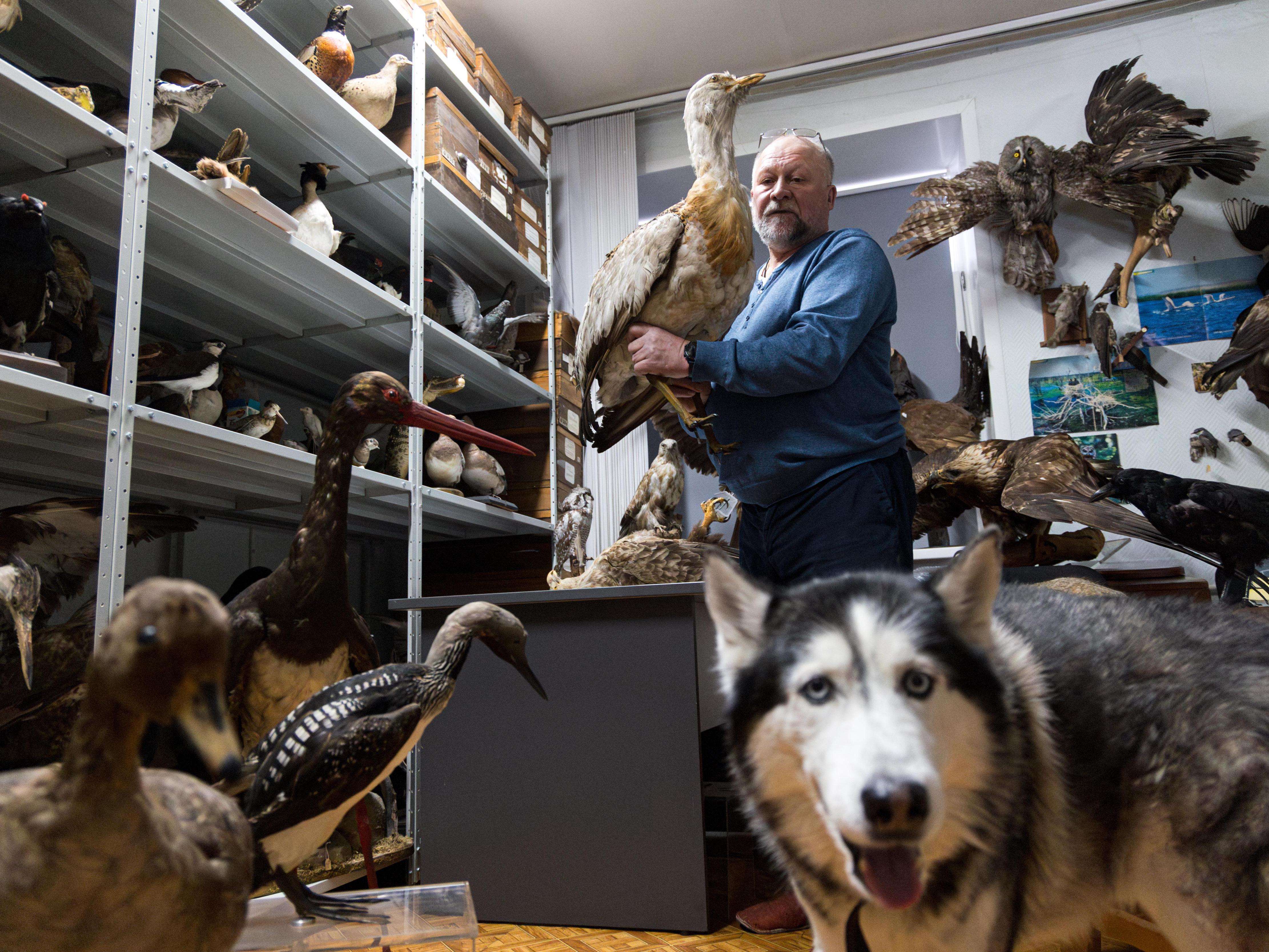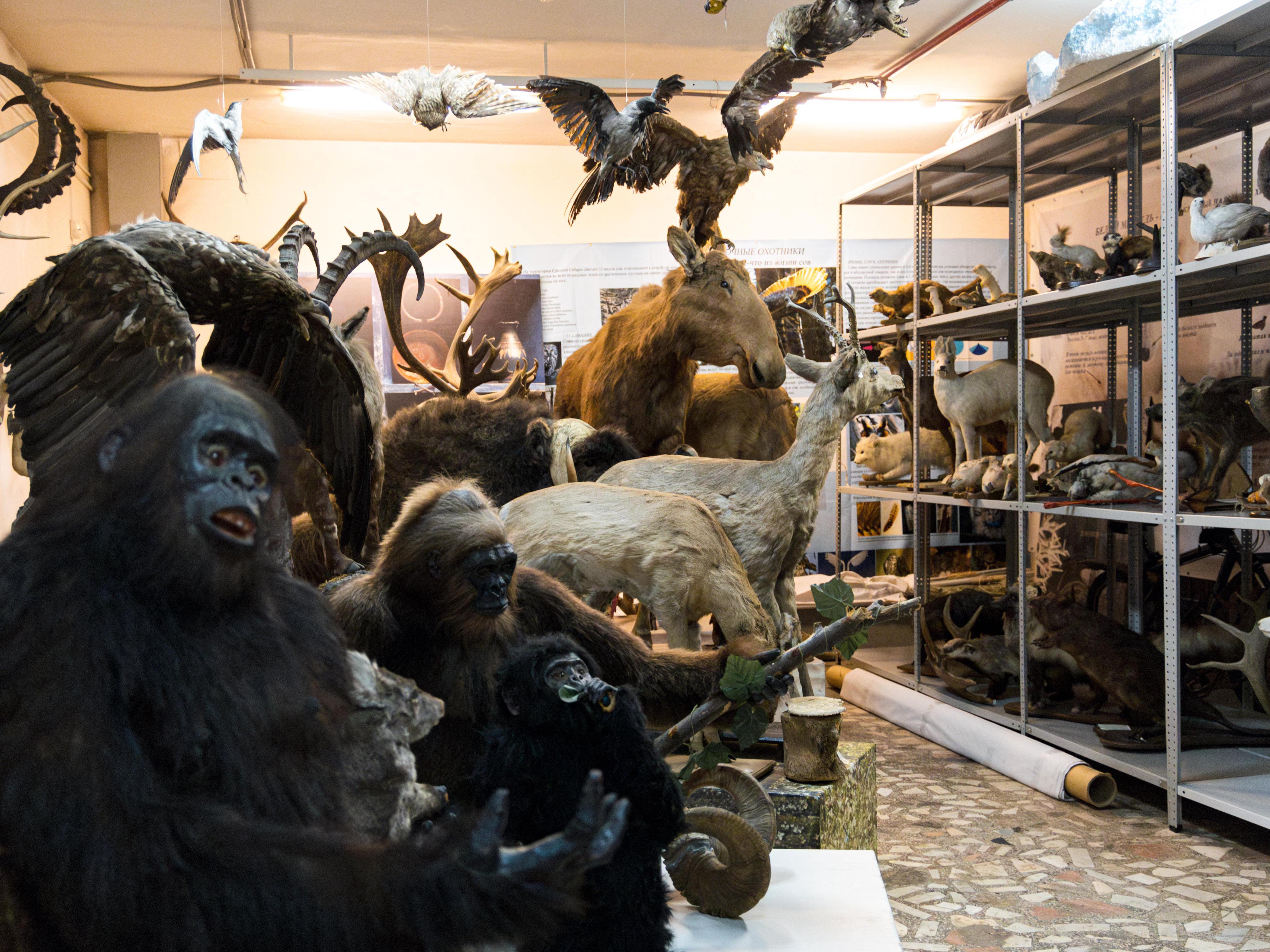 — There are exhibits that we won«t display. Here, for example, a white-tailed eagle. It»s also quite ancient, about a hundred years old. But it«s in the register of the main fund and writing off such items is extremely difficult, so here there are things that are constantly used in scientific-educational and exhibition work, and there are things that are scientific material.