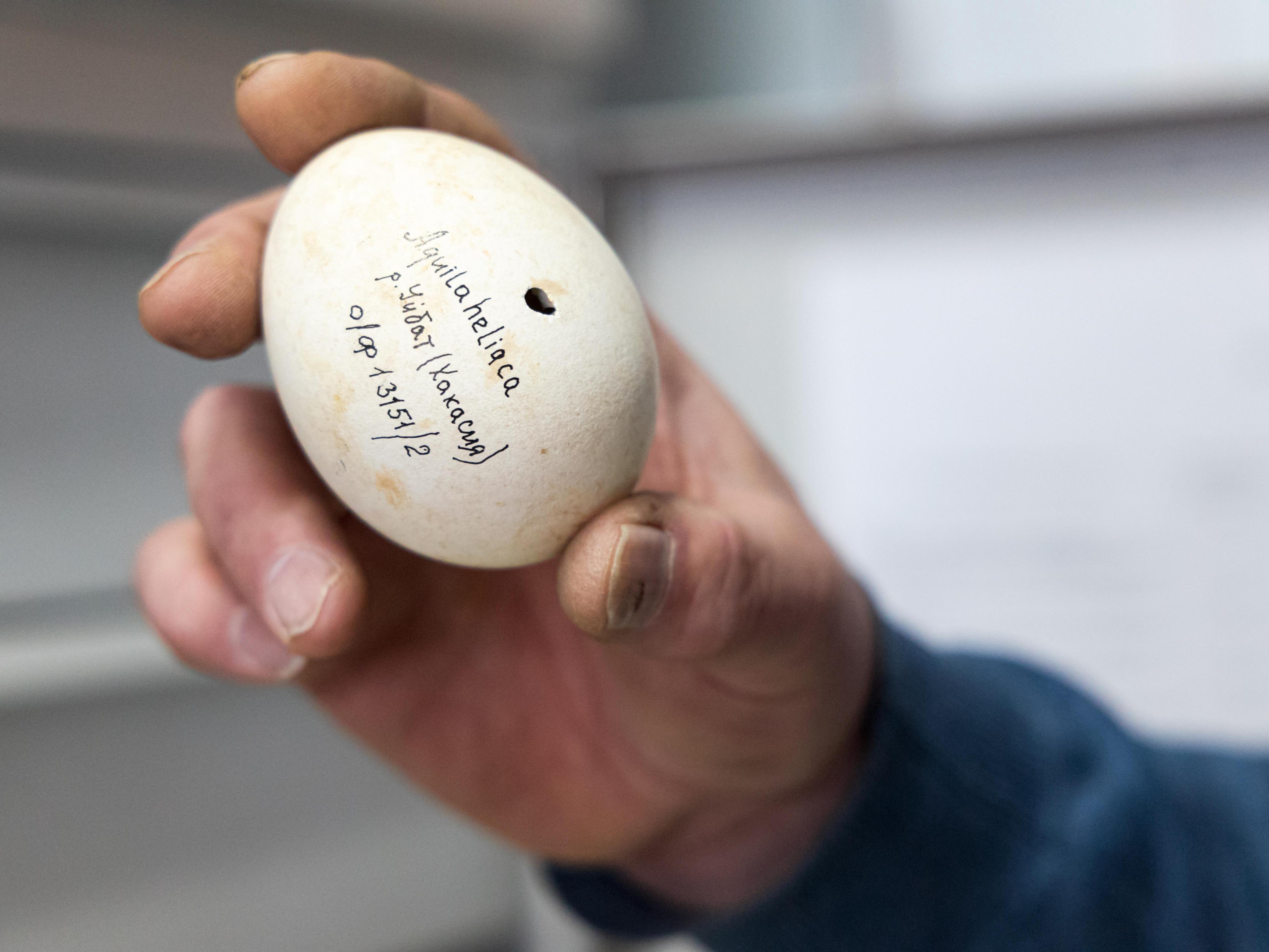 — An egg of a rare species, the eastern imperial eagle, or burial eagle, as it«s called. In the international »Red Book,« by the way. I found it on the Uybat River — when you see a nest with chicks and an egg nearby, it means it»s a «chatterbox,» that is, unfertilized. And we remove such eggs, — tells Igor Gavrilov.