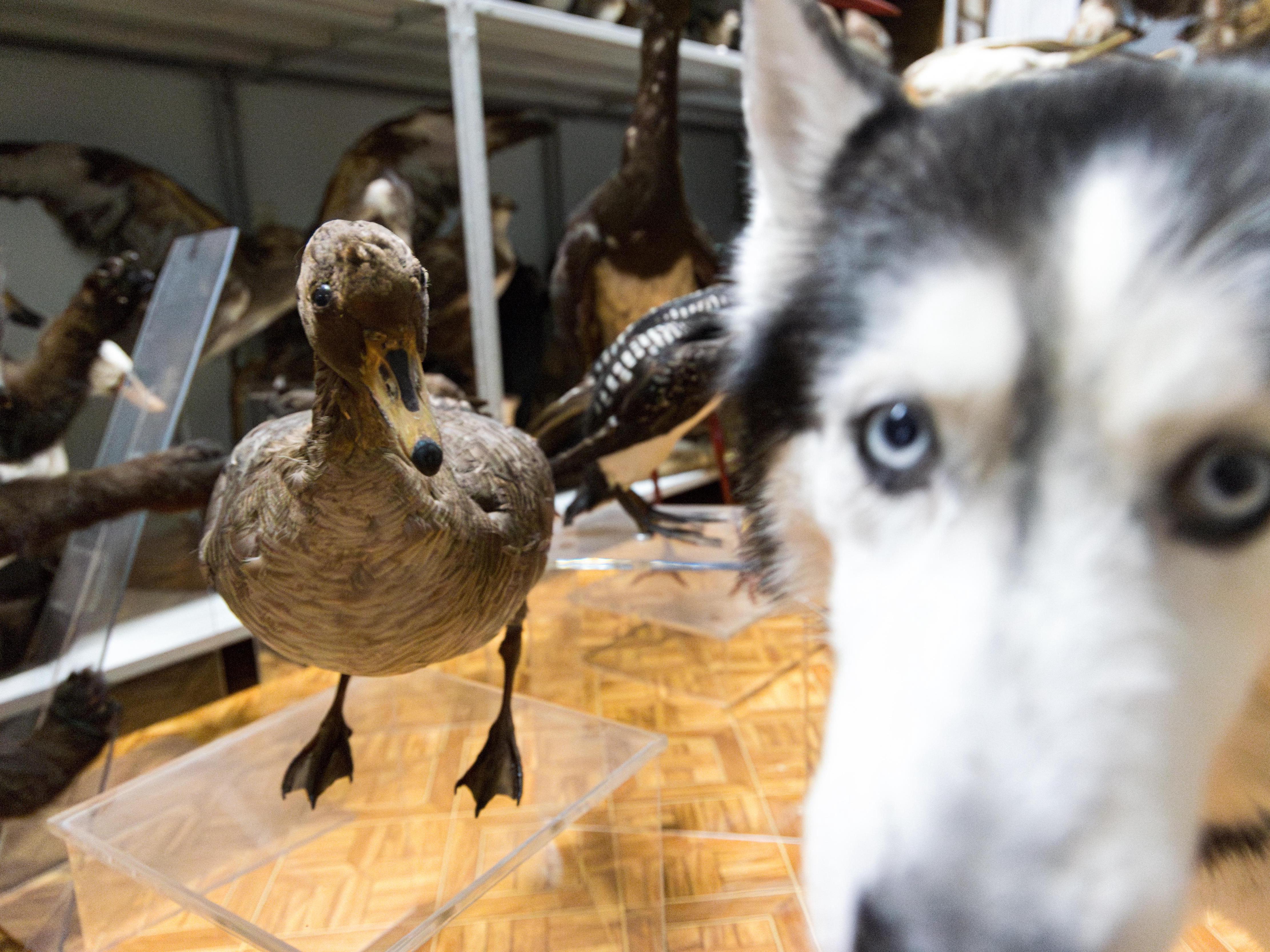 Joy looks approvingly at his keeper and sets off to accompany us on a tour of the storerooms like a boss. In general, everything is as it should be in a repository where almost all specimens are related to nature.