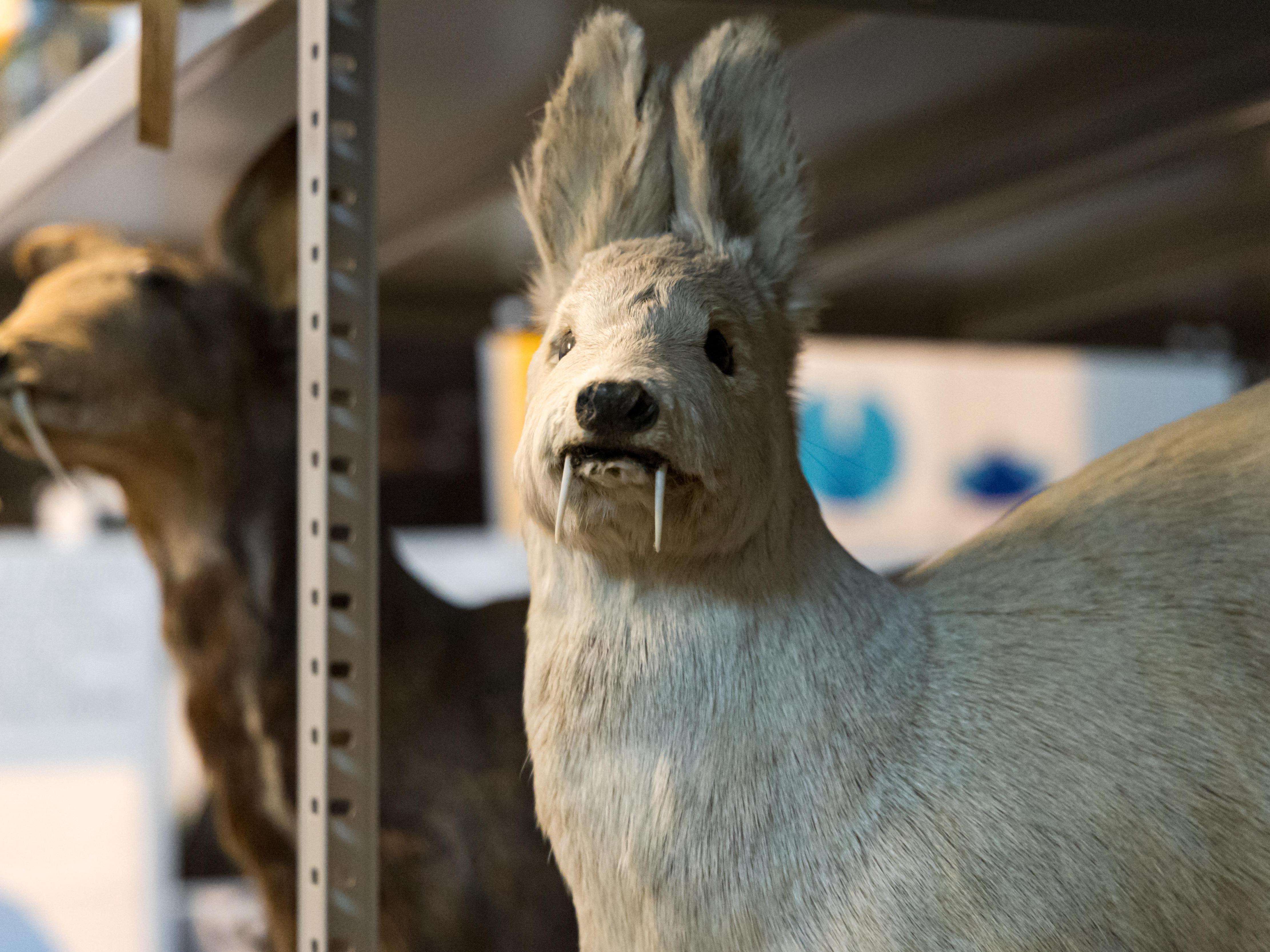 — Overall, there«s a lot of unique stuff here. Look, a two-headed calf — it was brought in 1908 from what is now Uyarsky District and made into an exhibit here. This specimen was seen in its time by our parents, grandparents. Recently I made an exhibition »Kunstkamera on the Banks of the Yenisei« from such curiosities, — says the scientist. — Here»s a three-eyed piglet, it was brought to us in the early 2000s. Or here, an albino musk deer. Due to this deviation, its chances of survival in the wild are zero. Too conspicuous a coloration.